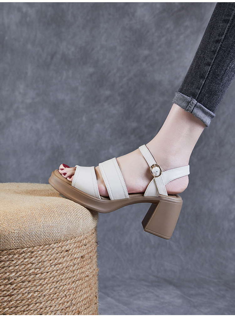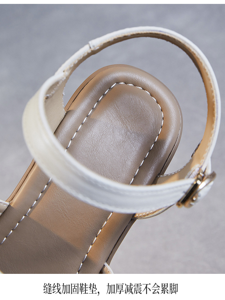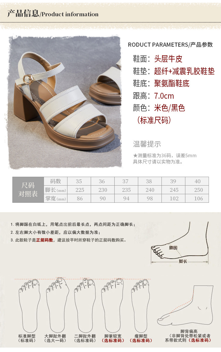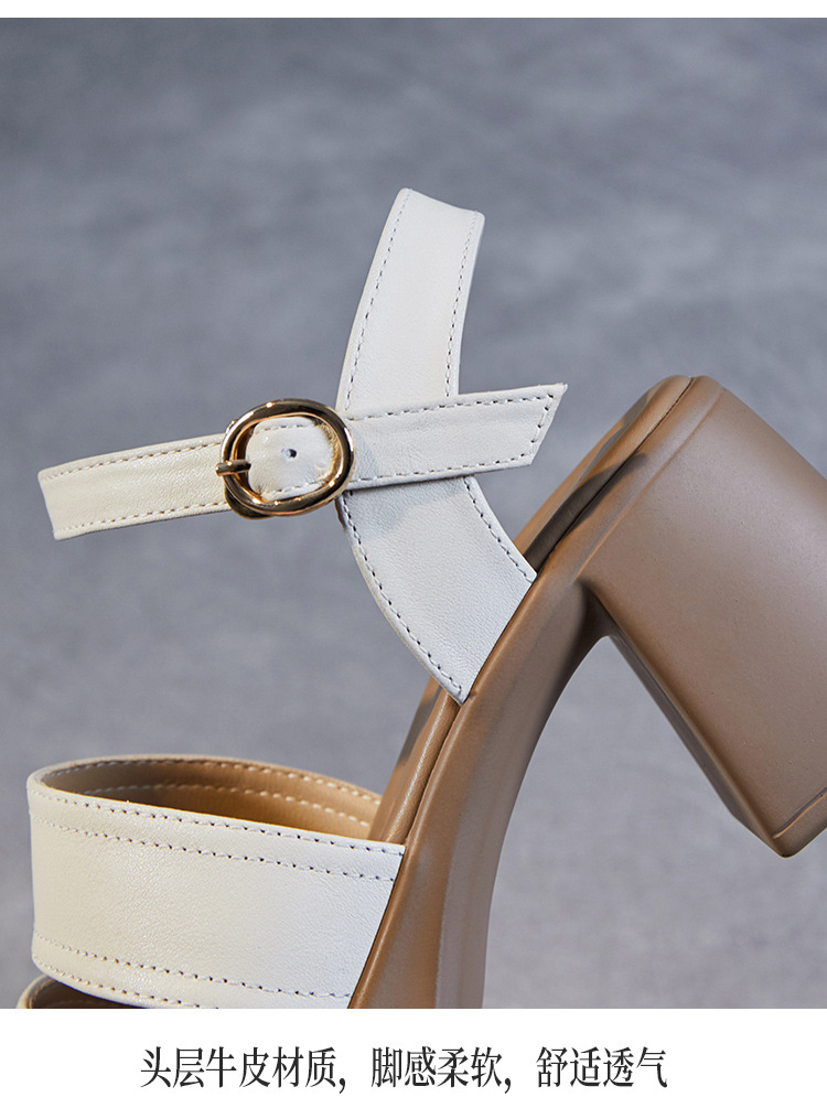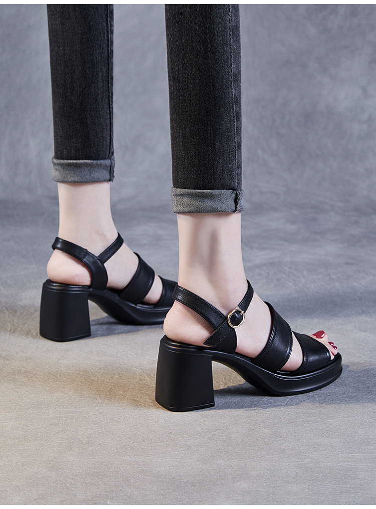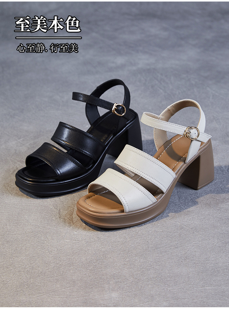 여성용 천연 가죽 두꺼운 굽 샌들, 가볍고 편안한 하이힐, 2025년 여름 신상 여성화, 패셔너블하고 다재다능한 슬리밍 슈즈스토어 가기