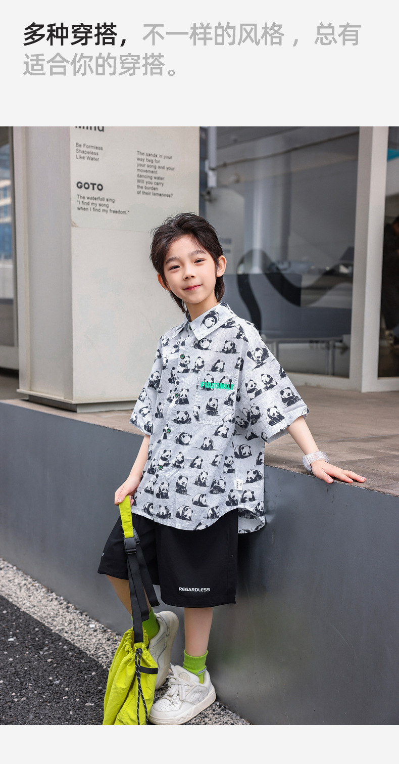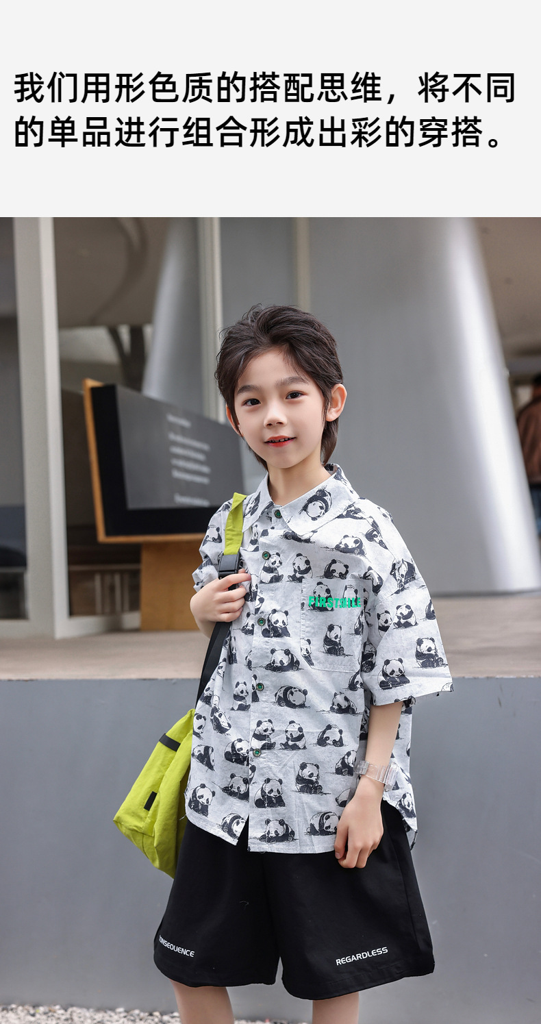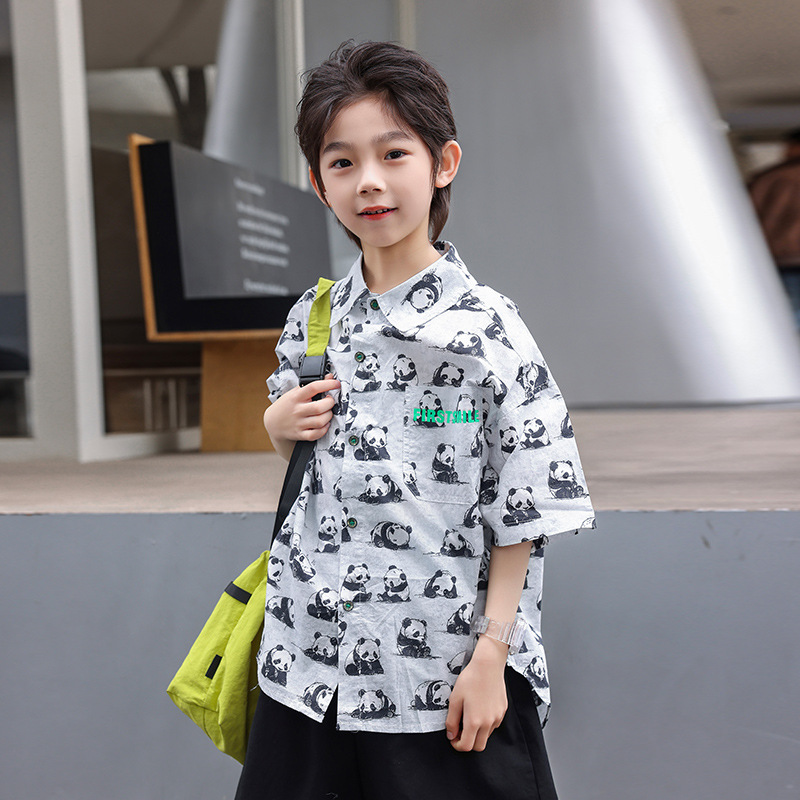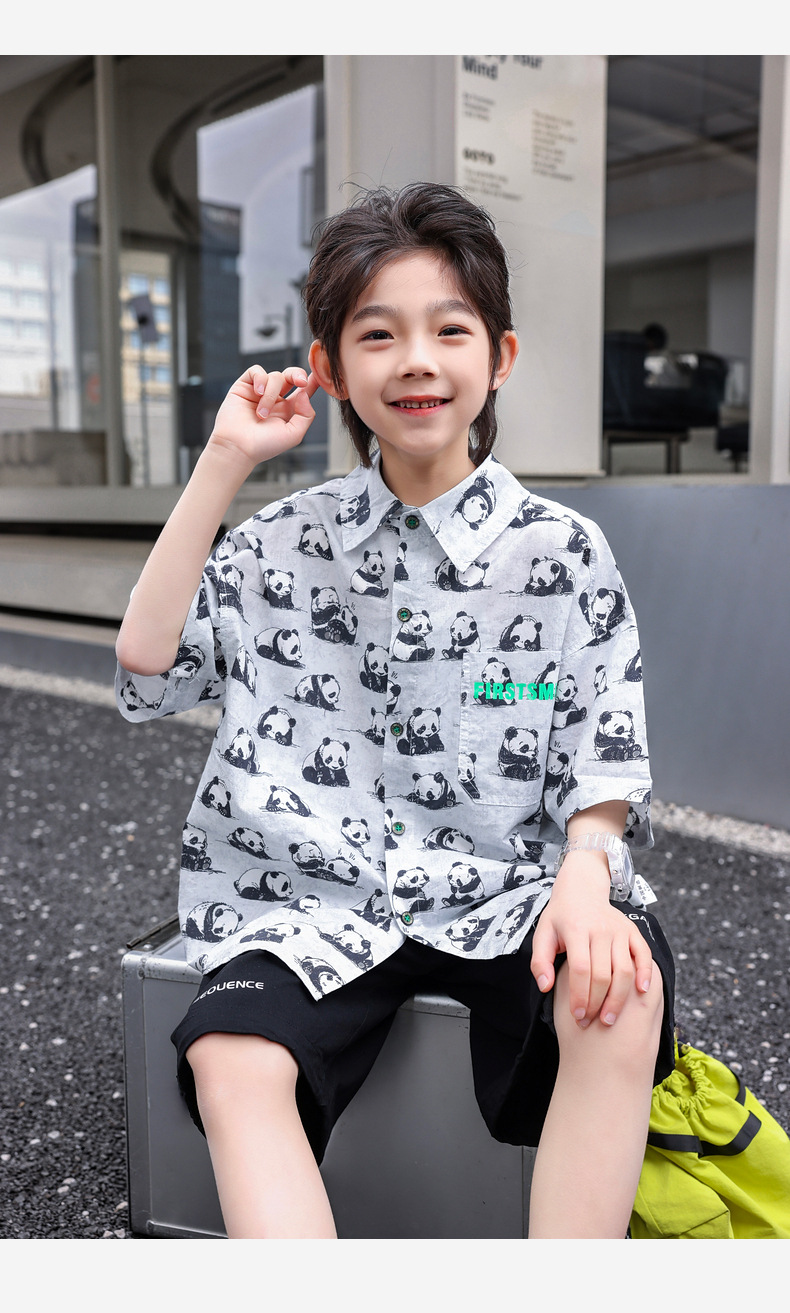 2025 여름 새로운 만화 팬더 소년 셔츠 순수 코튼 어린이 반팔 셔츠 여름 탑 제조 업체 도매스토어 가기