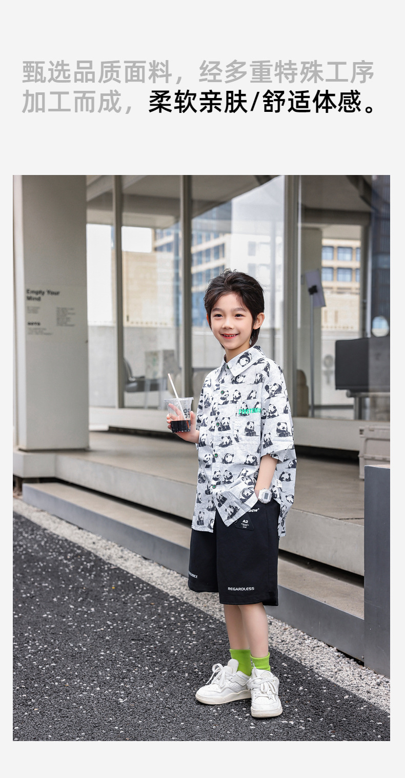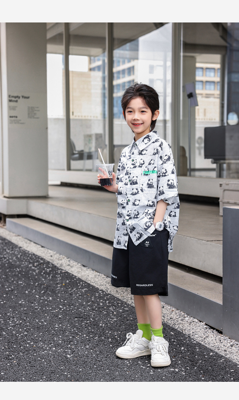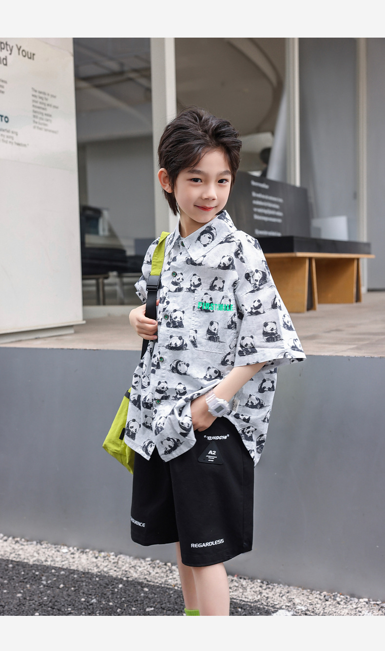 2025 여름 새로운 만화 팬더 소년 셔츠 순수 코튼 어린이 반팔 셔츠 여름 탑 제조 업체 도매스토어 가기