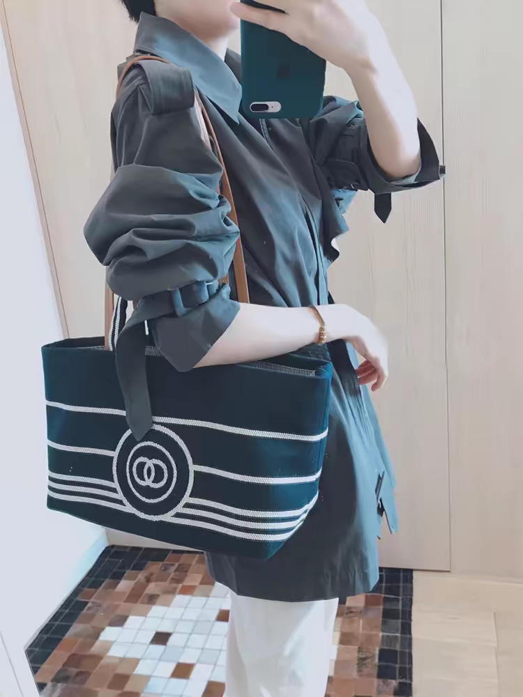• 고품질 네이비 블루 비치 백 대형 38cm