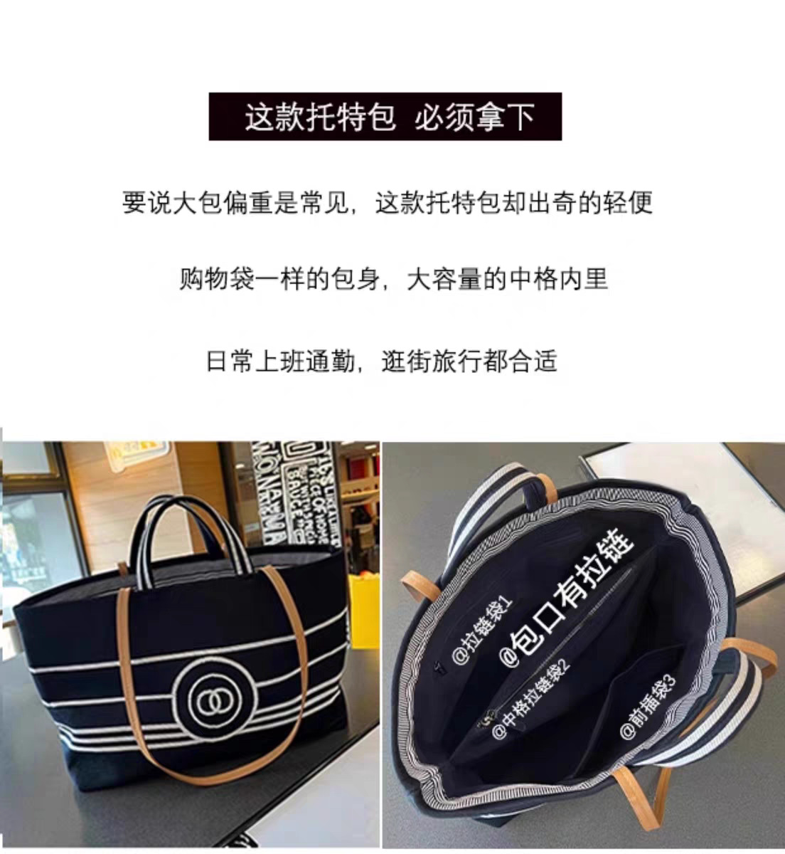 Xiaoxiangfeng 데님 토트 백 여성용 어깨 대용량 캔버스 통근 가방 고품질 네이비 스트라이프 비치 백스토어 가기