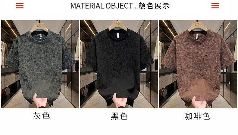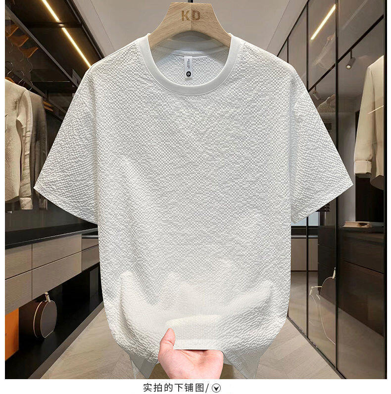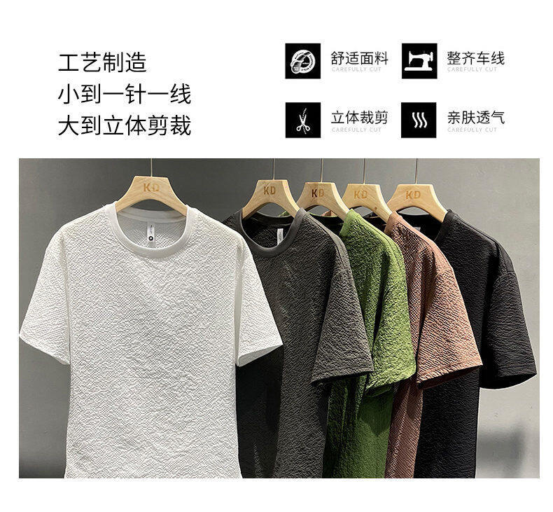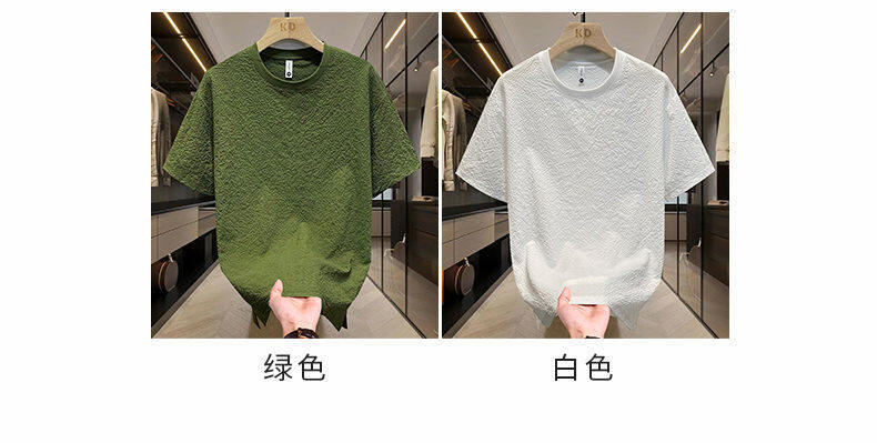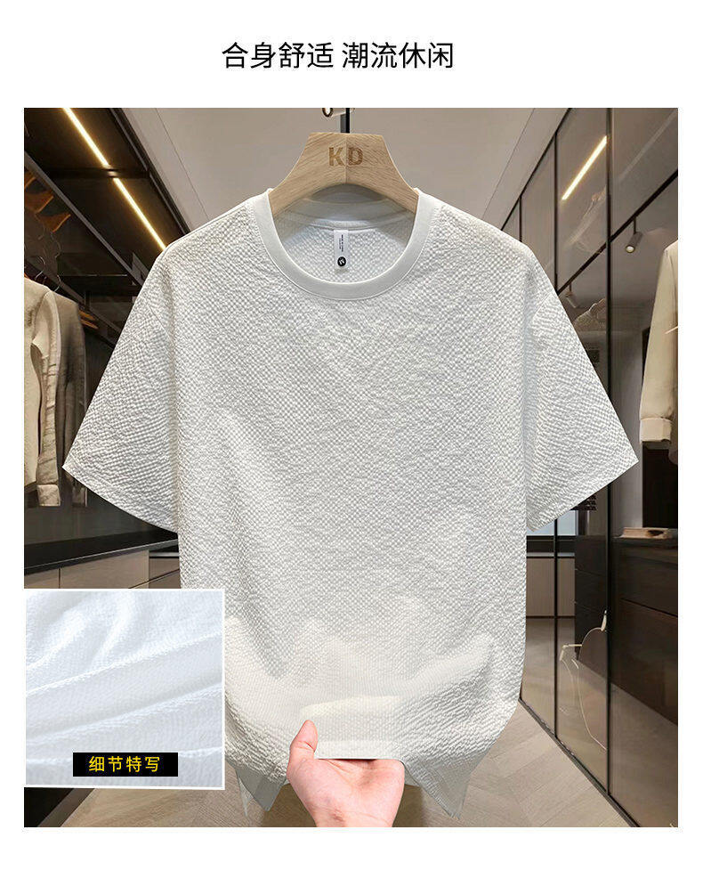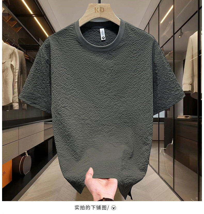 여름 시어서커 고급 솔리드 컬러 질감 루즈 라운드 넥 남성 반팔 신작 캐주얼 탑 반팔 티셔츠스토어 가기