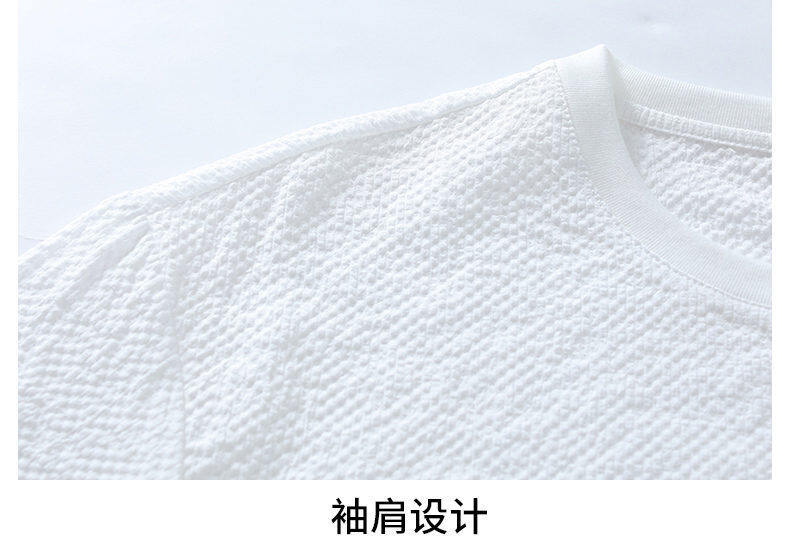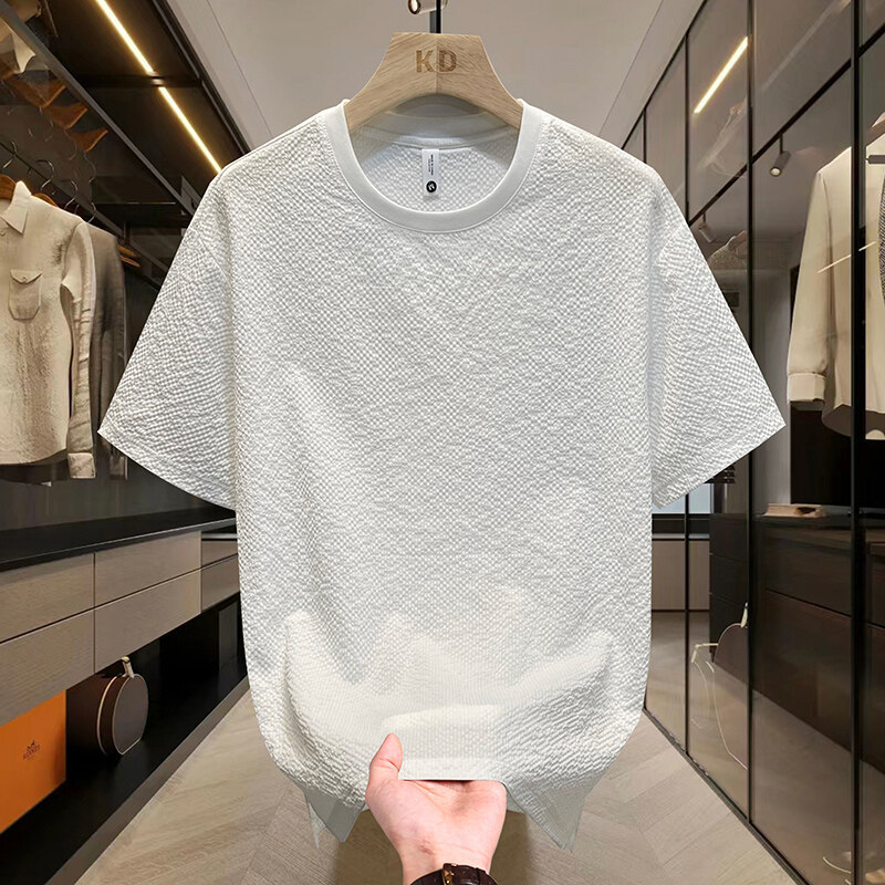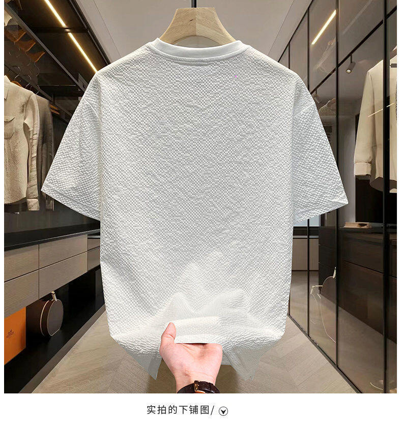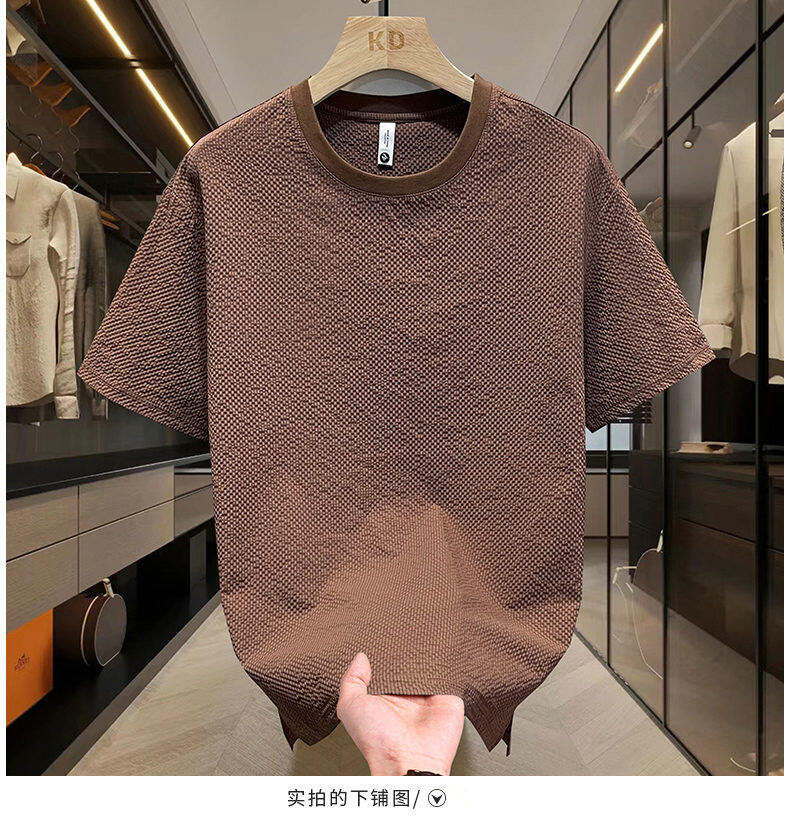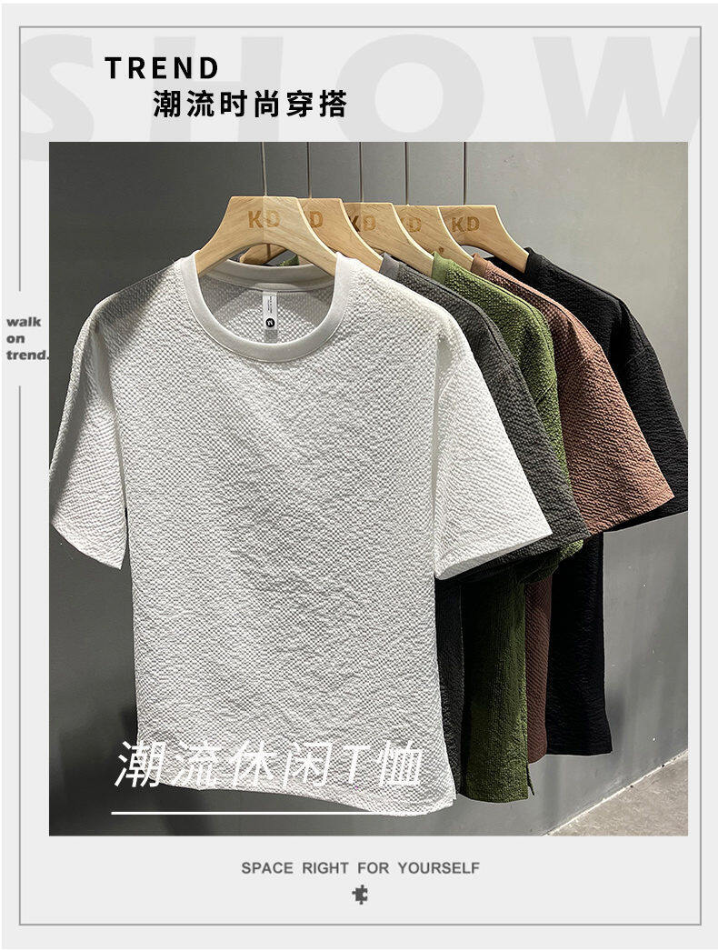 여름 시어서커 고급 솔리드 컬러 질감 루즈 라운드 넥 남성 반팔 신작 캐주얼 탑 반팔 티셔츠스토어 가기