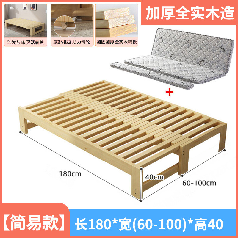 단단한 나무 접이식 소파 침대, 다기능 접이식 침대, 소형 가정용 당김 침대, 푸시 및 드로우 올인원, 이중 용도, 간단한 개폐식 도매스토어 가기