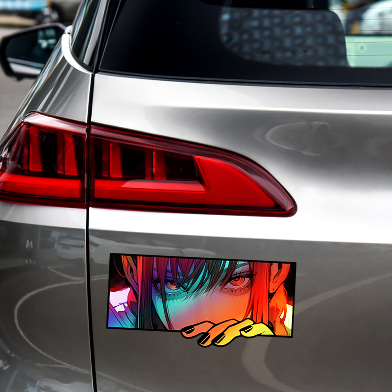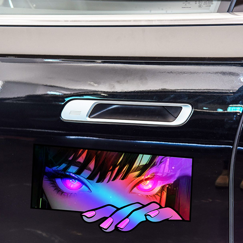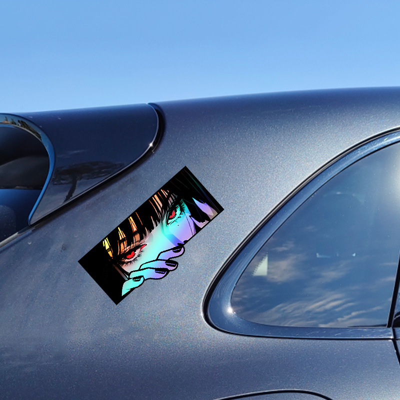 대외 무역 폭발 도로 자전거 애니메이션 눈 성격 자동차 장식 레이저 2 차원 자동차 꼬리 수정 스티커