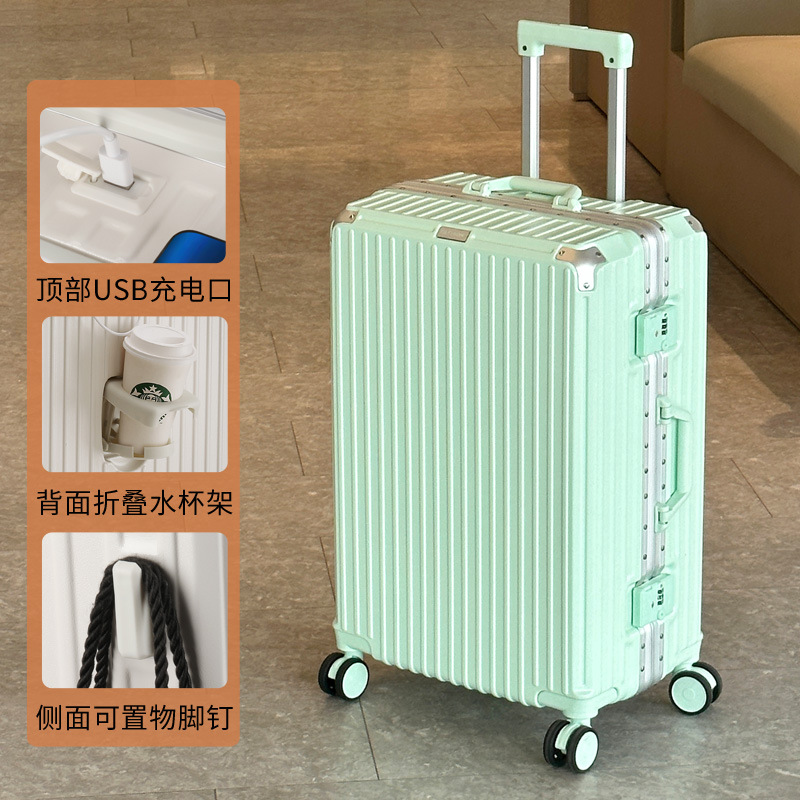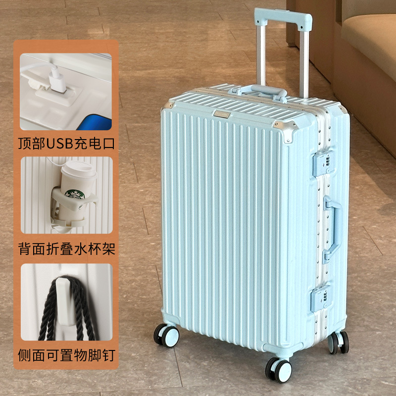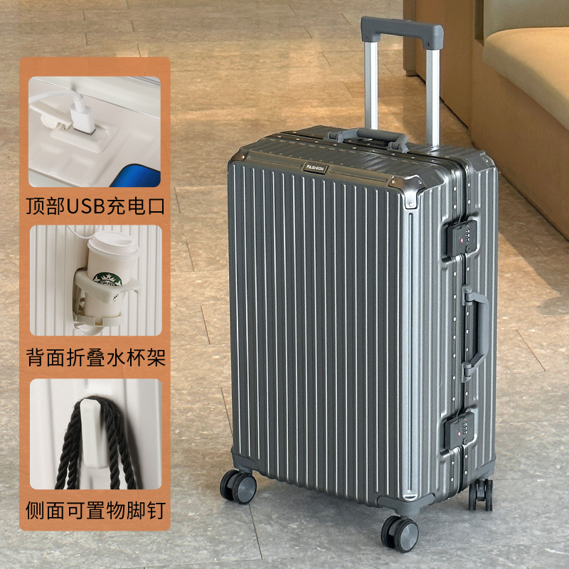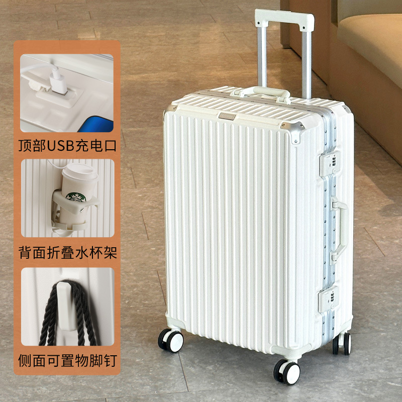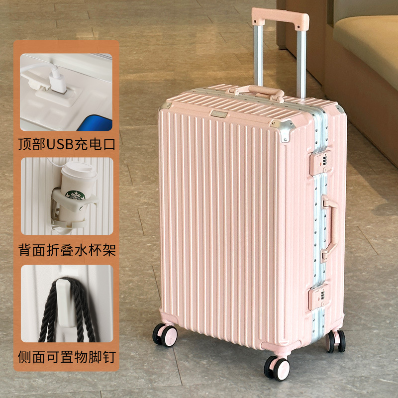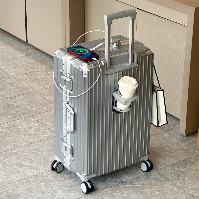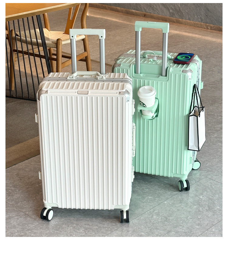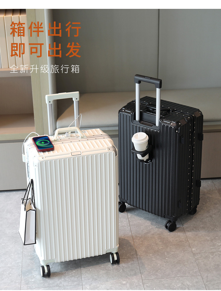 여행 가방 다기능 컵 홀더 후크 가방 여성 여행 가방 20inch 탑승 케이스 남성 비밀번호 트롤리 케이스