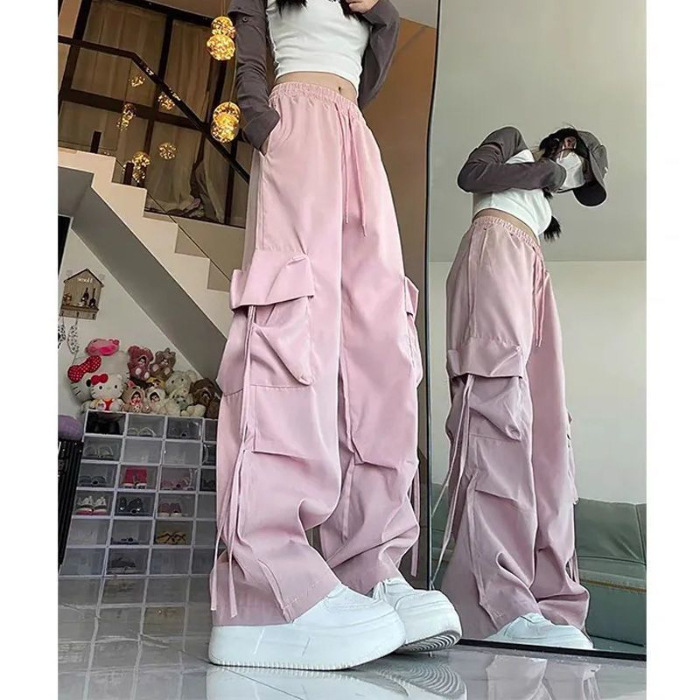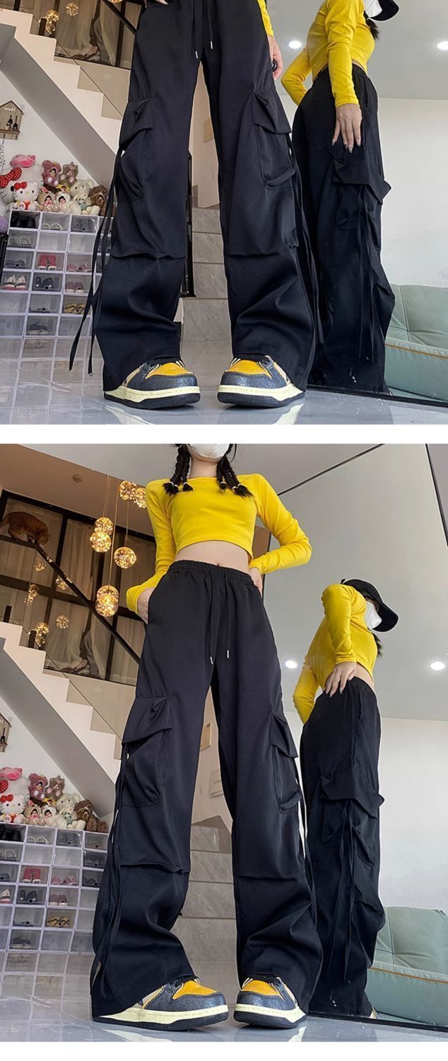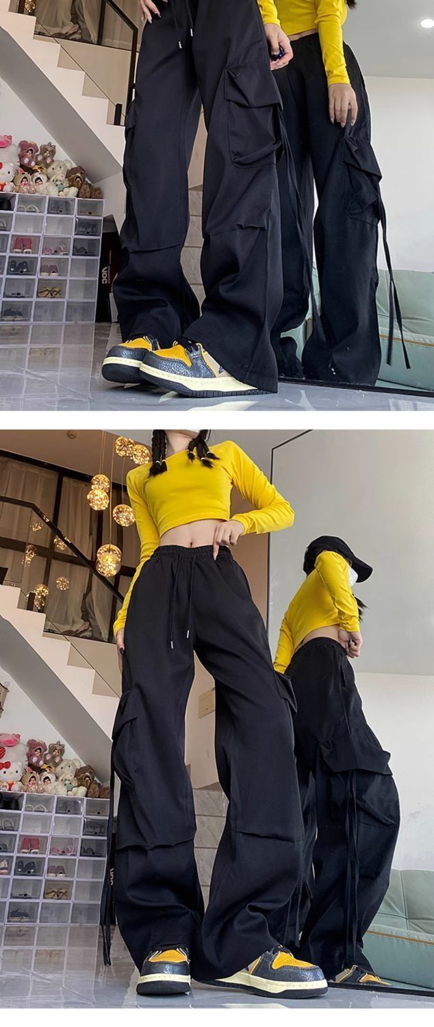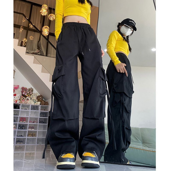 여성용 검은색 작업복 2025 새로운 스타일 작은 봄, 가을 느슨한 방풍 및 방수 등산 가을, 겨울 대형 충전 바지