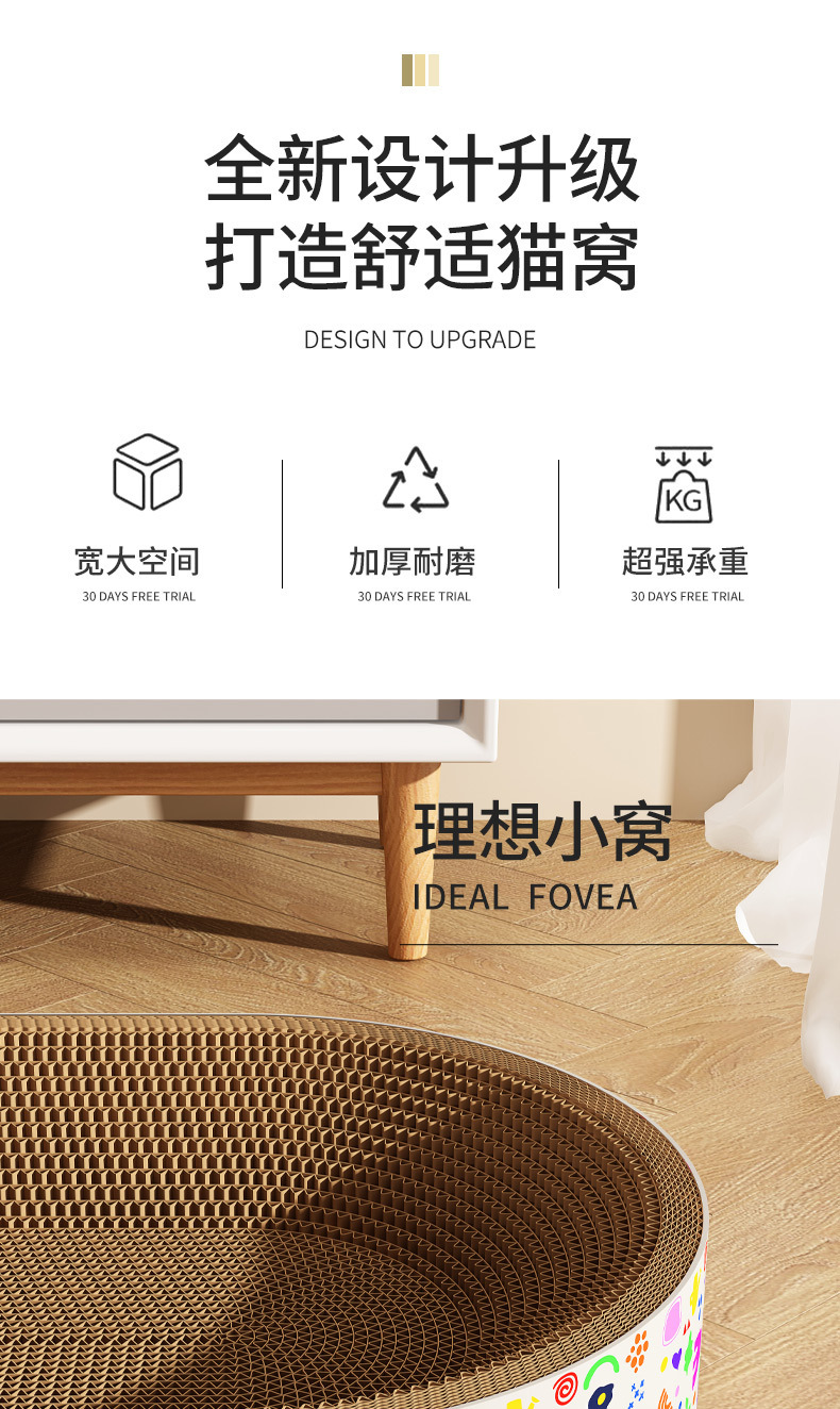 고양이 스크래치 보드, 특수 일체형, 긁힘 방지 및 부스러기 없는 골판지 발톱 연삭 둥근 장난감 고양이 둥지 도매스토어 가기