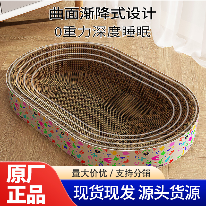고양이 스크래치 보드, 특수 일체형, 긁힘 방지 및 부스러기 없는 골판지 발톱 연삭 둥근 장난감 고양이 둥지 도매