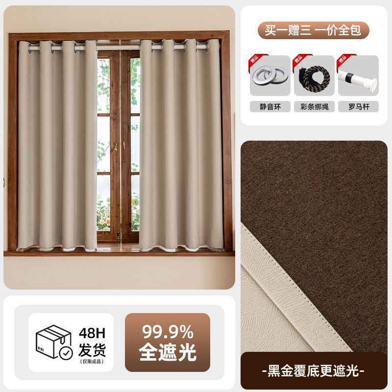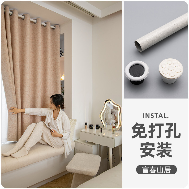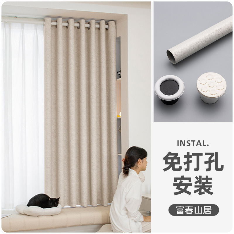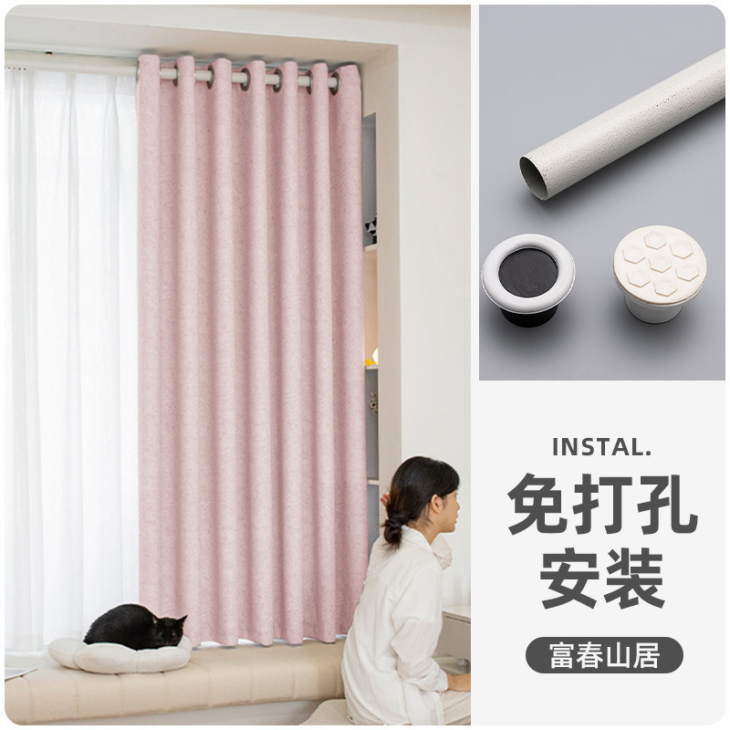 전체 정전 커튼 새로운 텔레스코픽 로드 침실 베이 창 기숙사 간단한 비 펀치 설치 세트스토어 가기