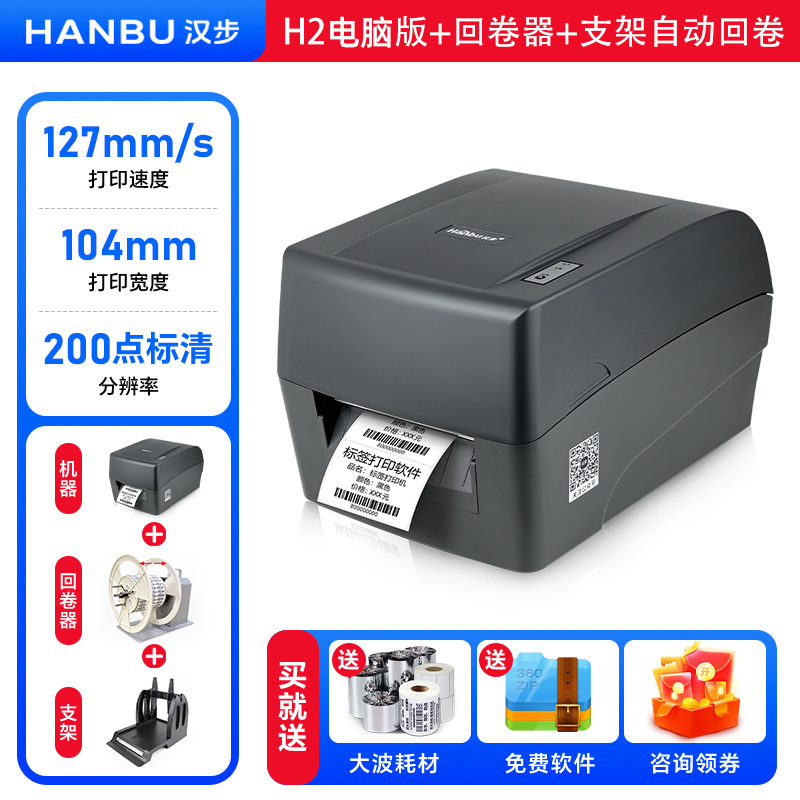 • 203dpi [H2 컴퓨터 버전] 108mm 폭 표준 화질/컴퓨터 연결 [무료 라벨 용지 + 리본]