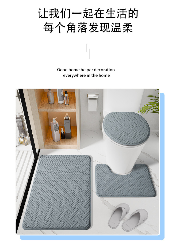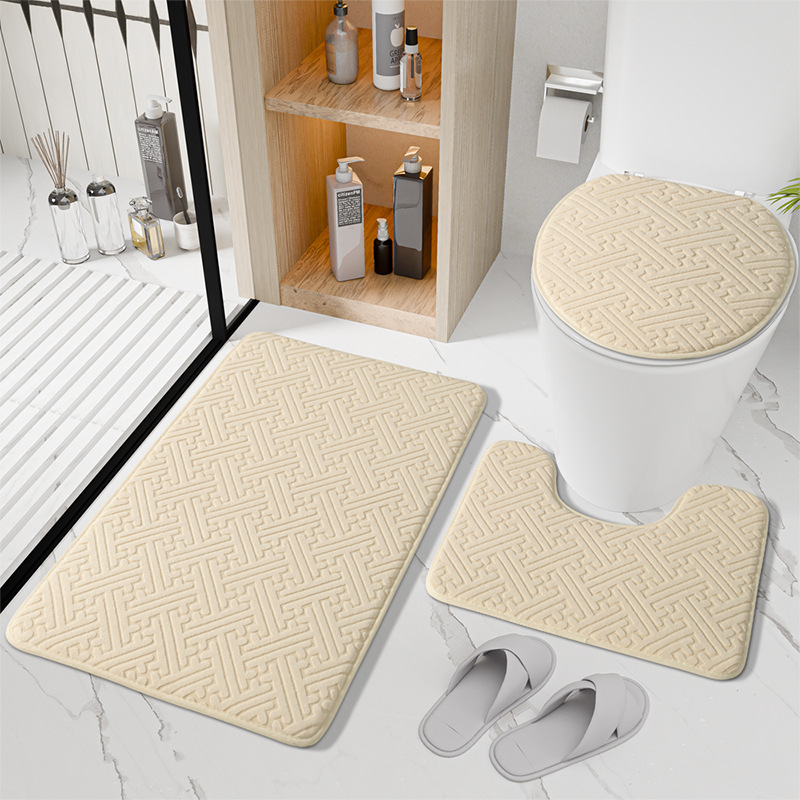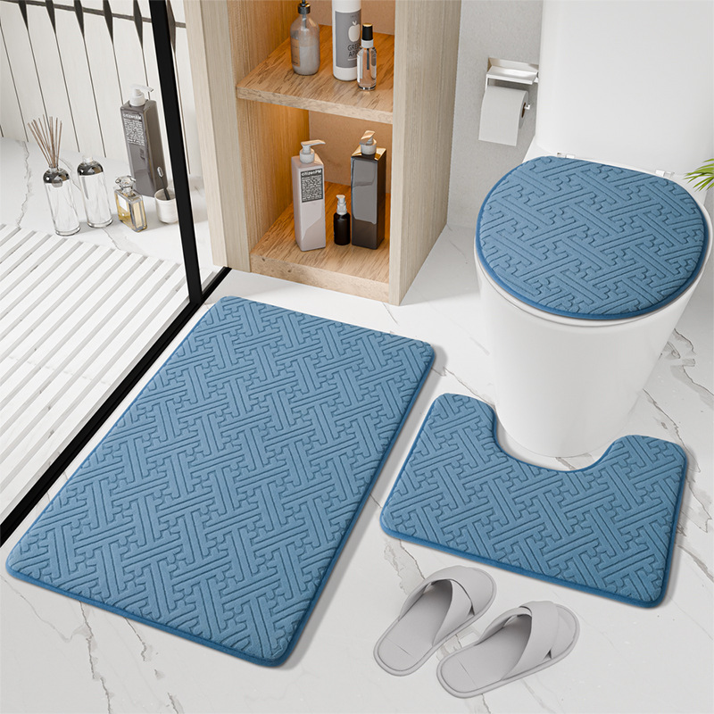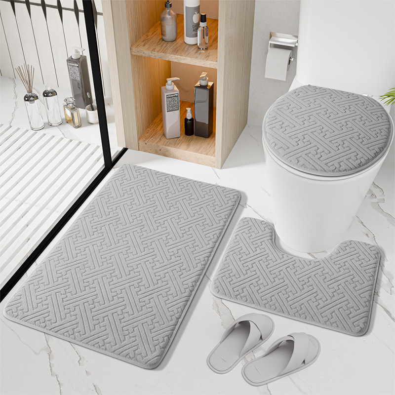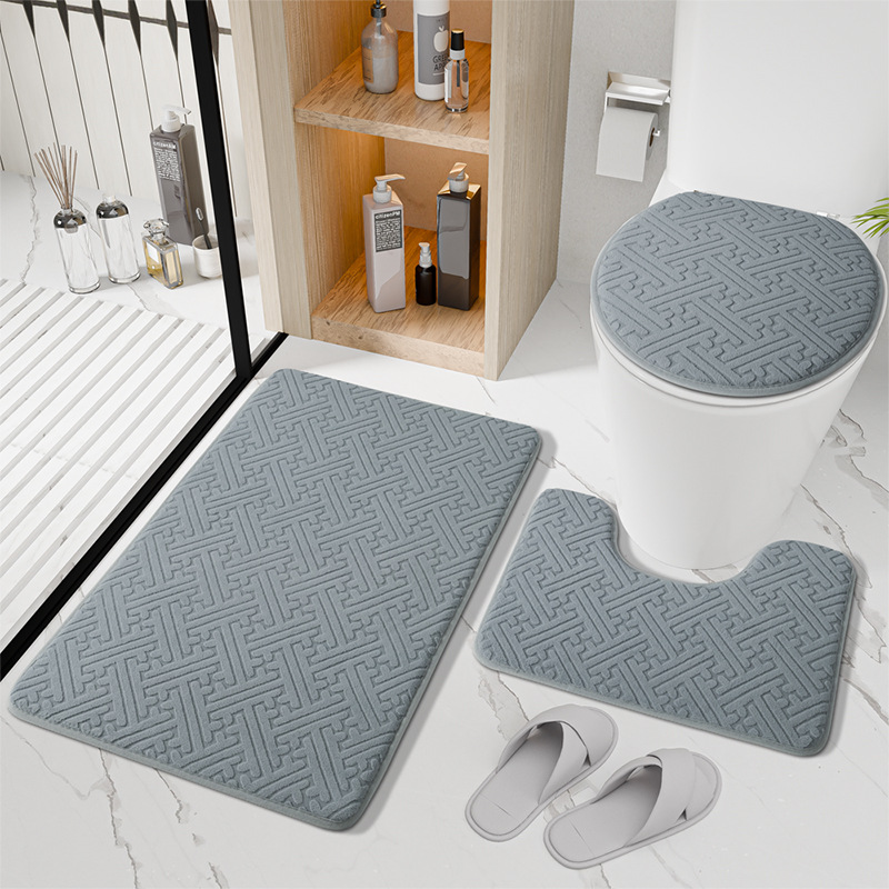 국경 새 솔리드 컬러 플로어 매트 욕실 미끄럼 방지 3 피스 화장실 매트 욕실 문 흡수성 가정용 발 매트스토어 가기