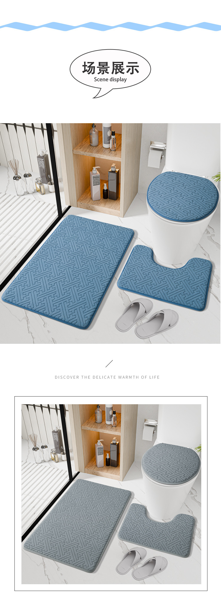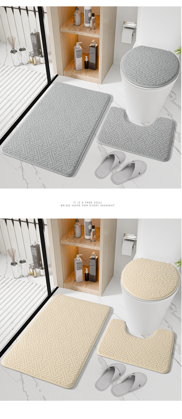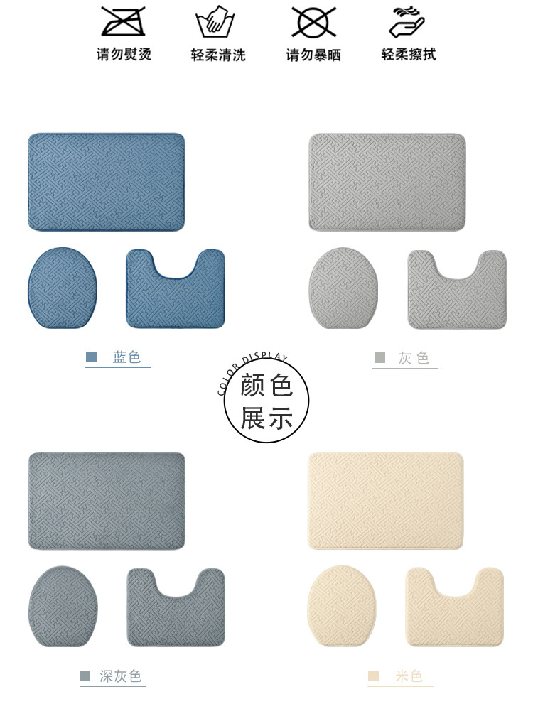 국경 새 솔리드 컬러 플로어 매트 욕실 미끄럼 방지 3 피스 화장실 매트 욕실 문 흡수성 가정용 발 매트스토어 가기