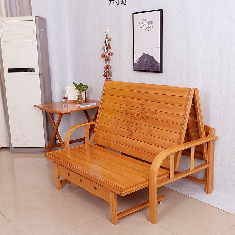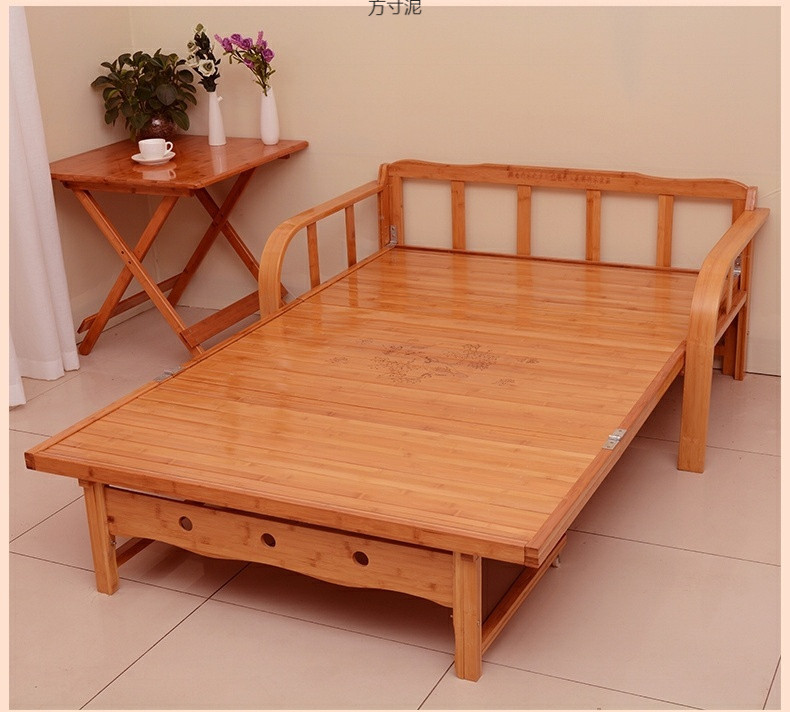 대나무 침대 간이 접이식 침대 소파 이중 용도 싱글 가정용 더블 다기능 사무실 점심 시간 소규모 가구 경제적스토어 가기