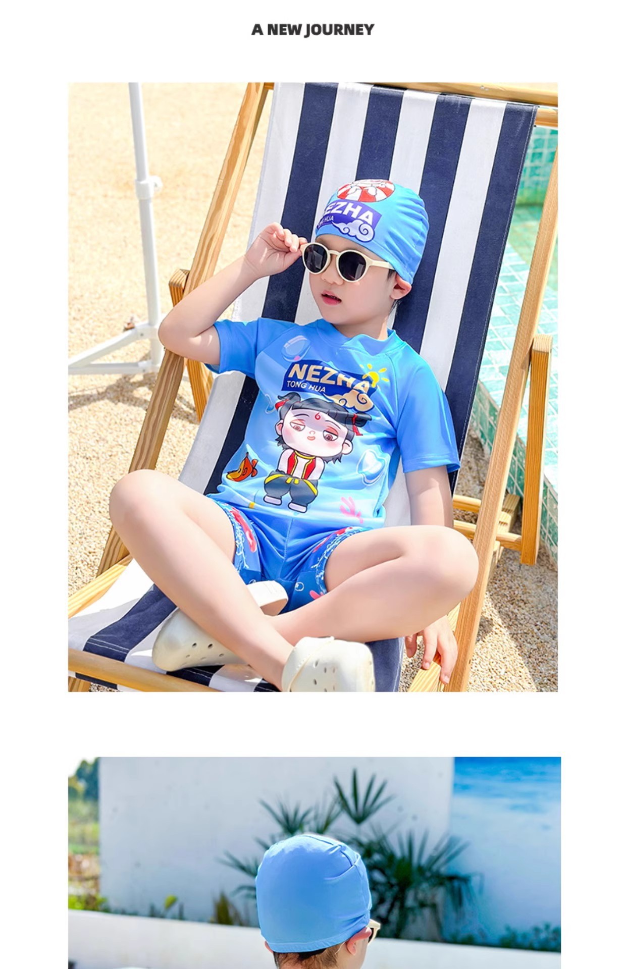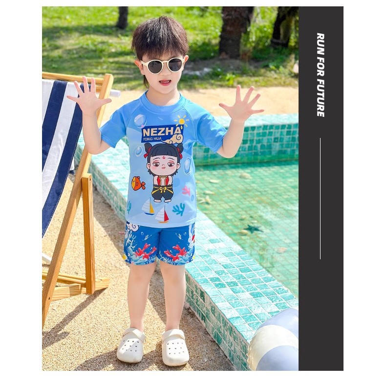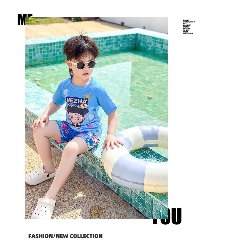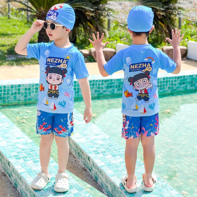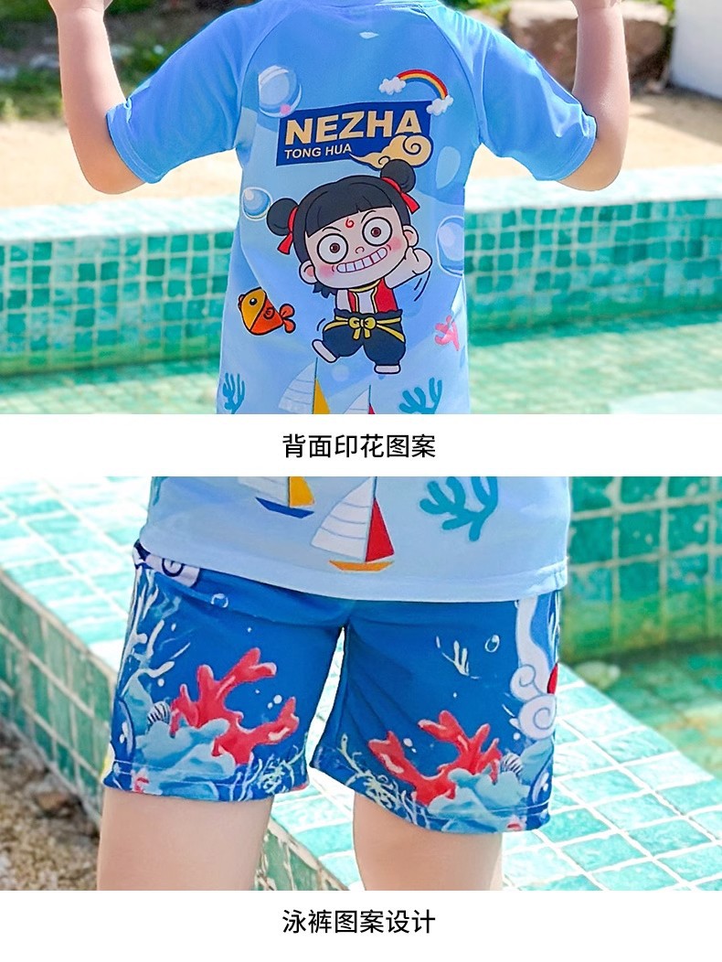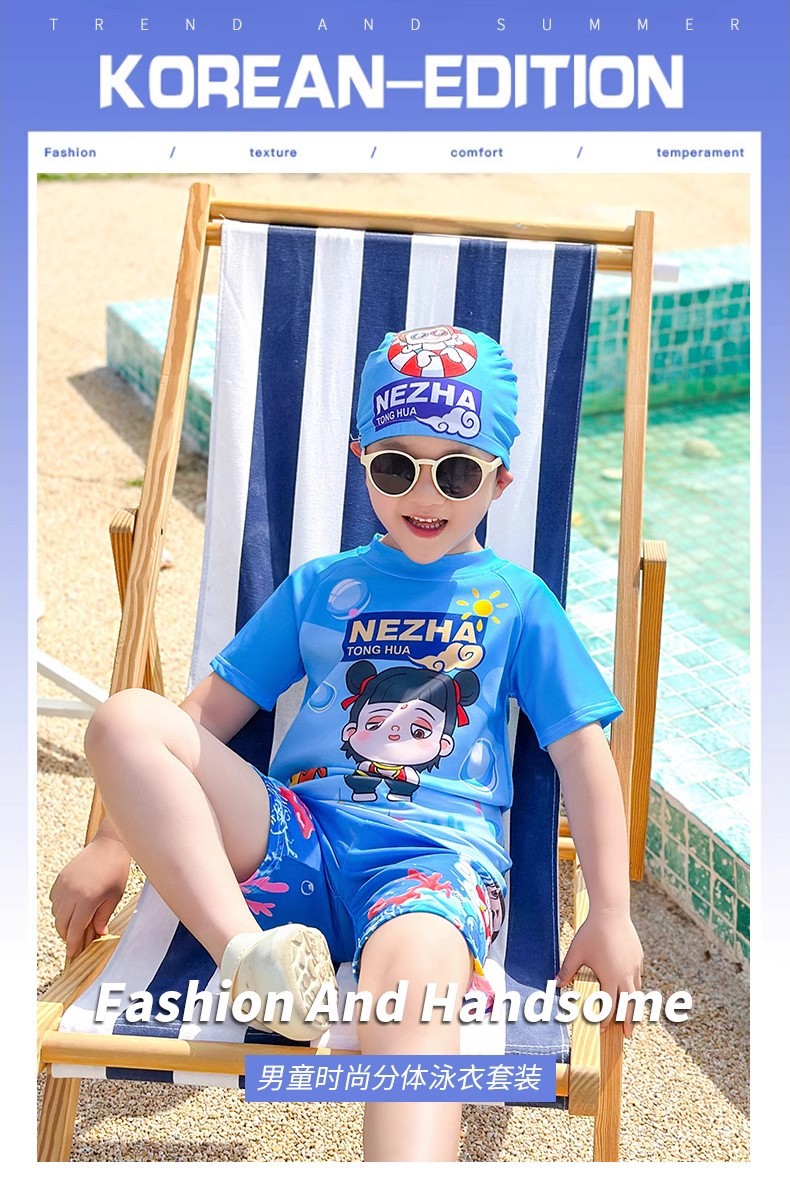 어린이 수영복 소년의 분할 온천 빠른 건조 수영복 Nezha 옷 작은 소년 아기 해변 휴일 세트