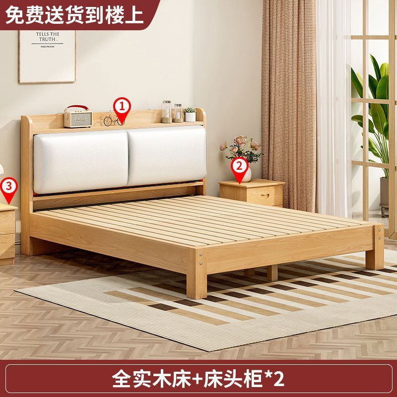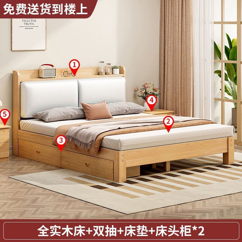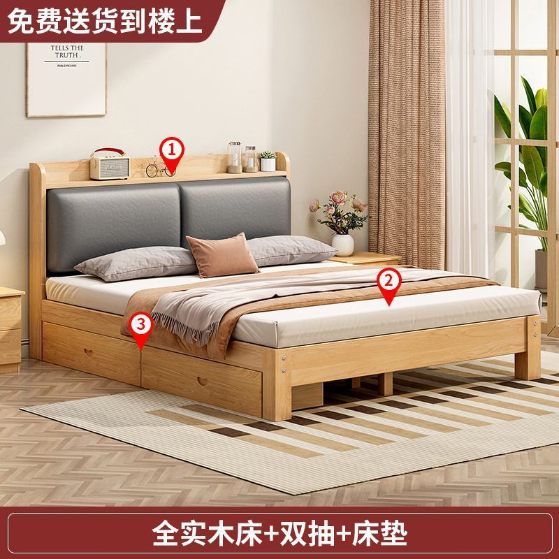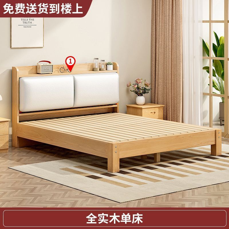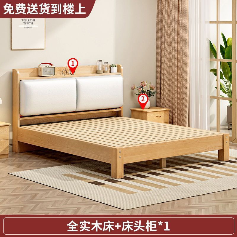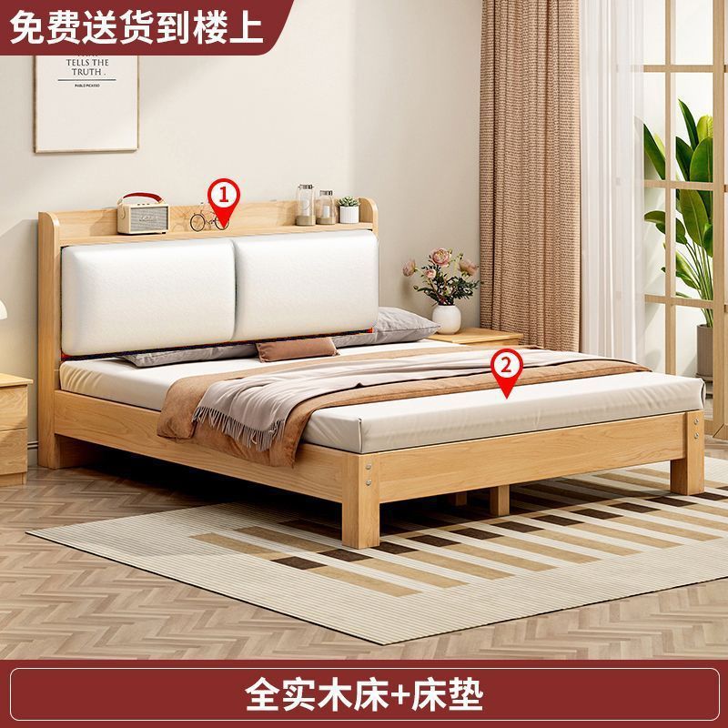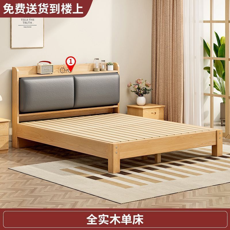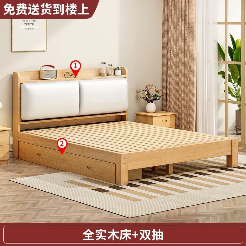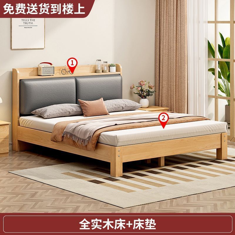 단단한 나무 침대 현대 단단한 나무. 미터. 싱글 침대 솔리드 우드 가정용 더블 침대 작은 아파트 임대 룸 침대스토어 가기