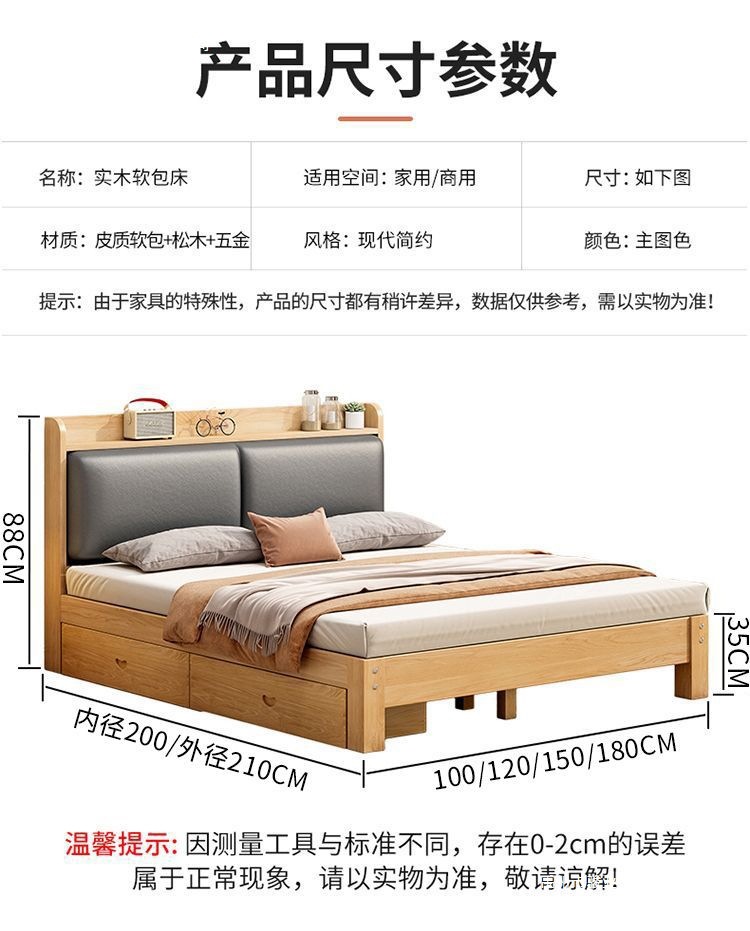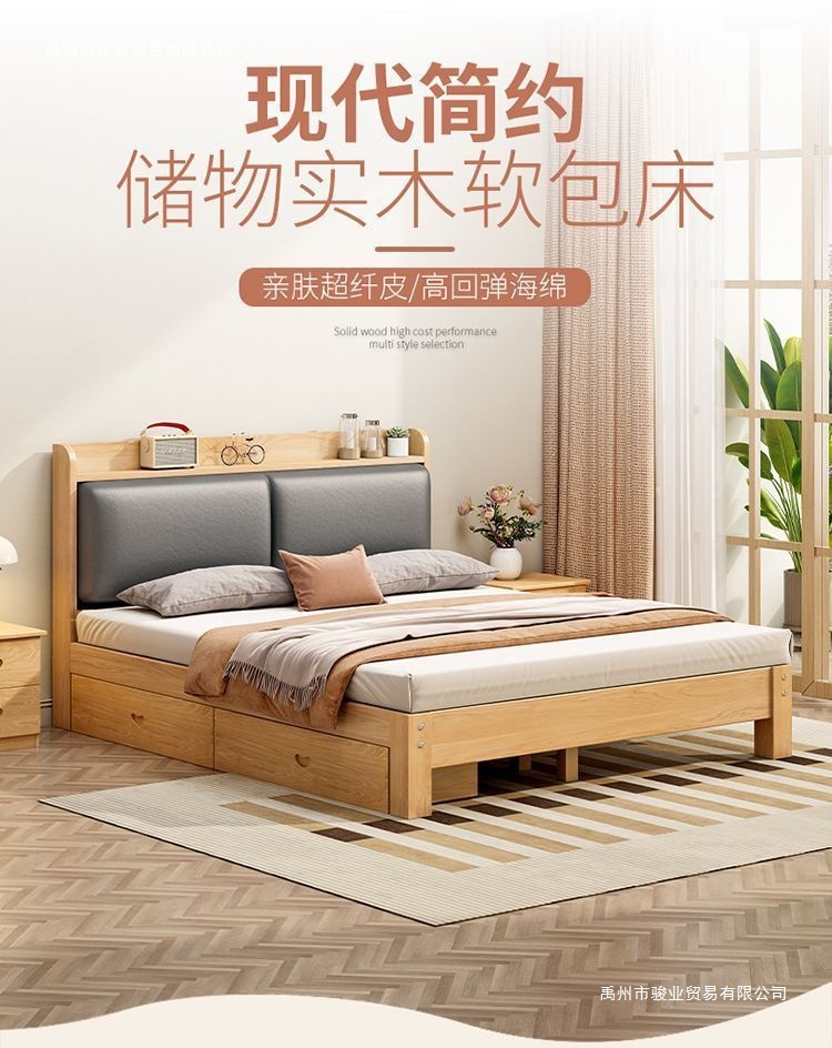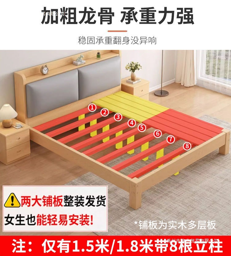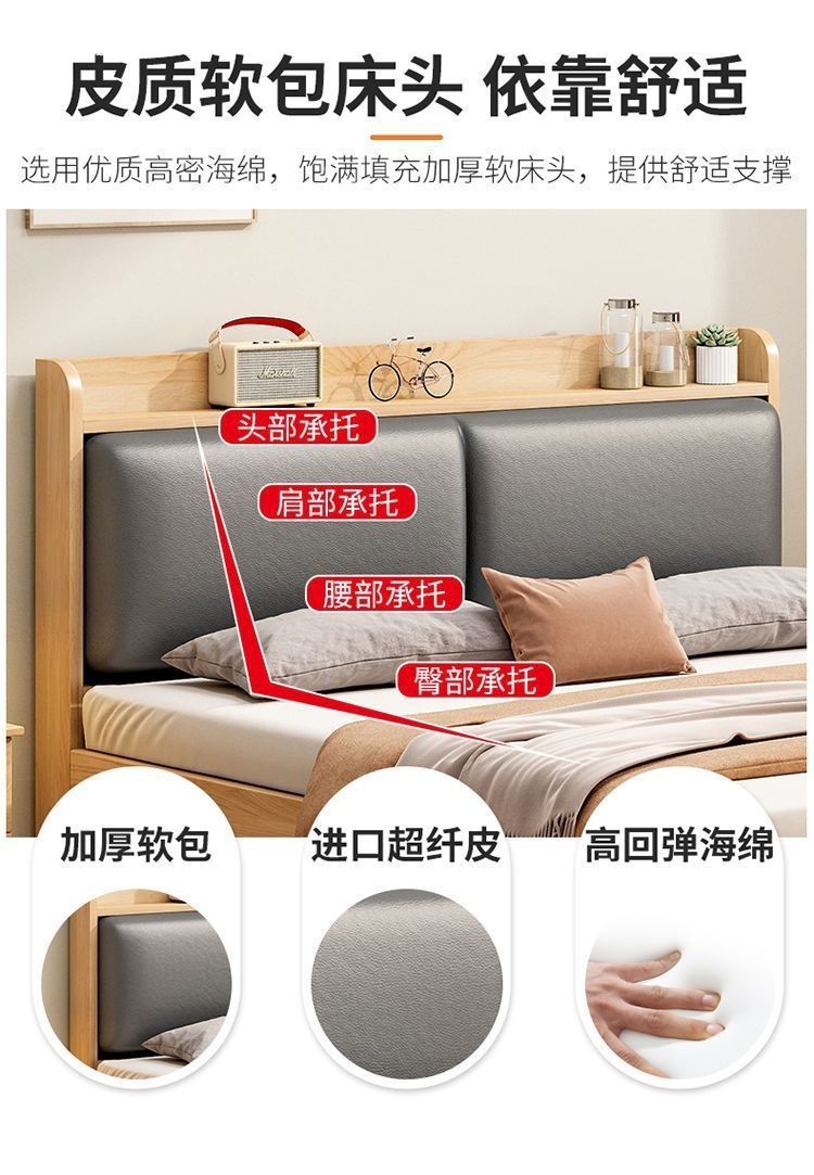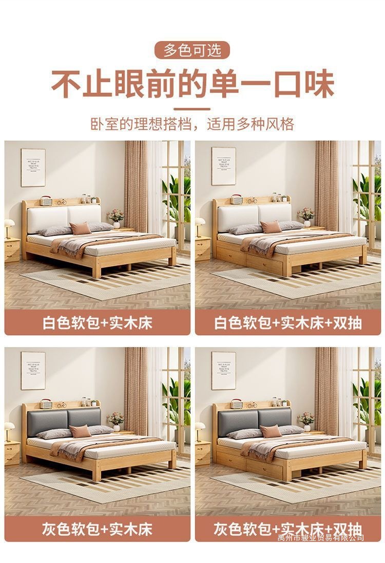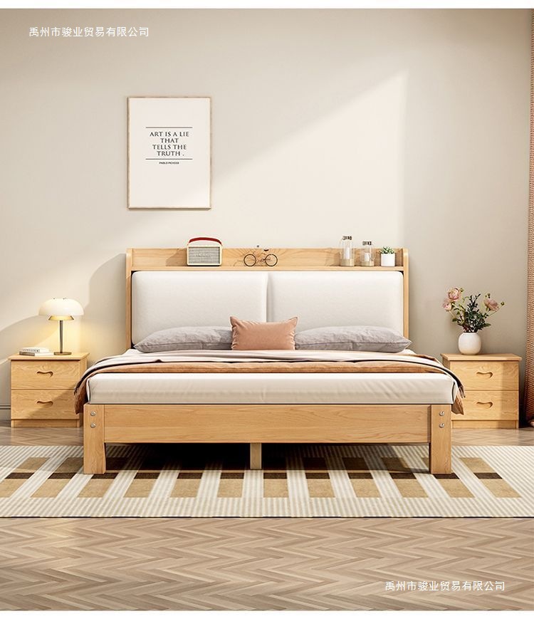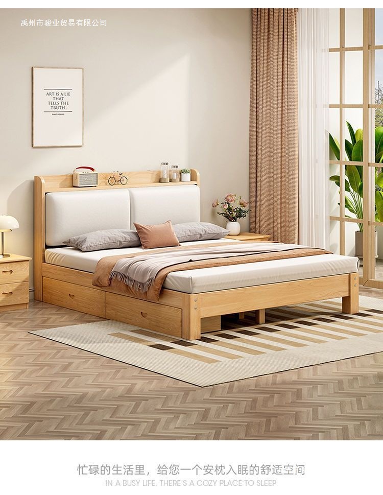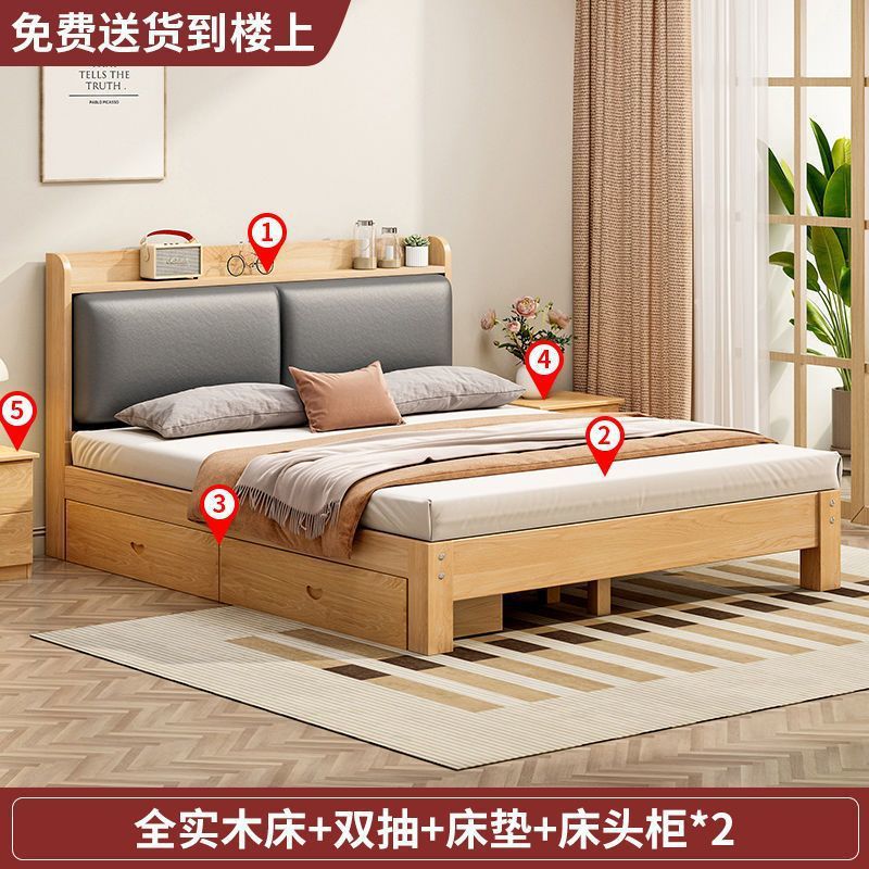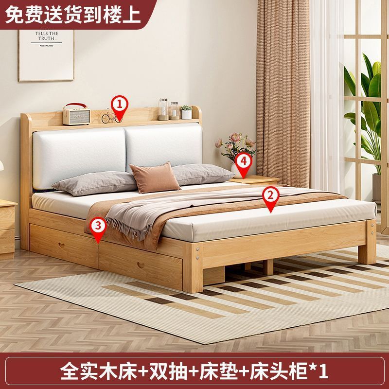 단단한 나무 침대 현대 단단한 나무. 미터. 싱글 침대 솔리드 우드 가정용 더블 침대 작은 아파트 임대 룸 침대스토어 가기