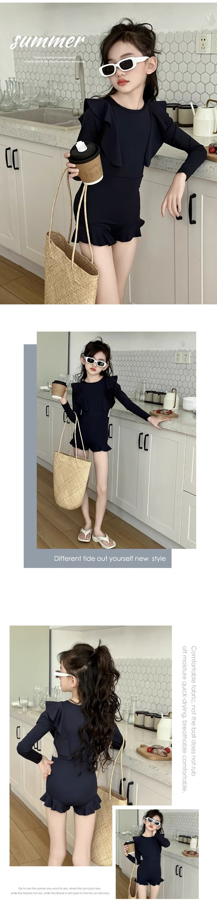 여자 수영복 온천 2024 새로운 여자 여름 수영복 어린이 긴팔 자외선 차단 수영복 하이 엔드
