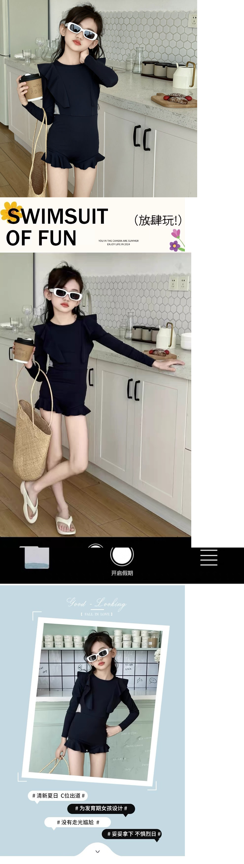 여자 수영복 온천 2024 새로운 여자 여름 수영복 어린이 긴팔 자외선 차단 수영복 하이 엔드스토어 가기