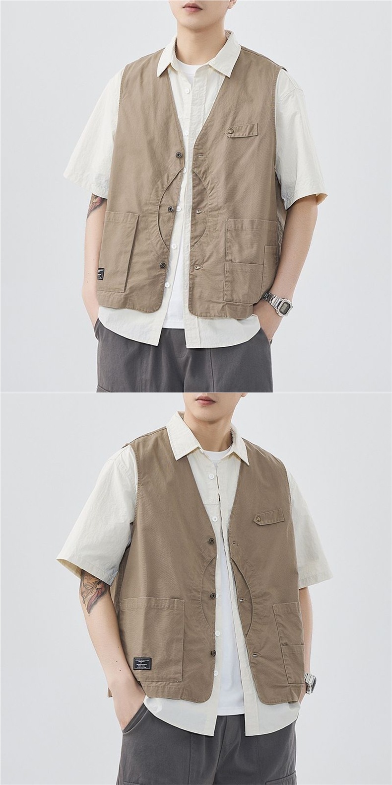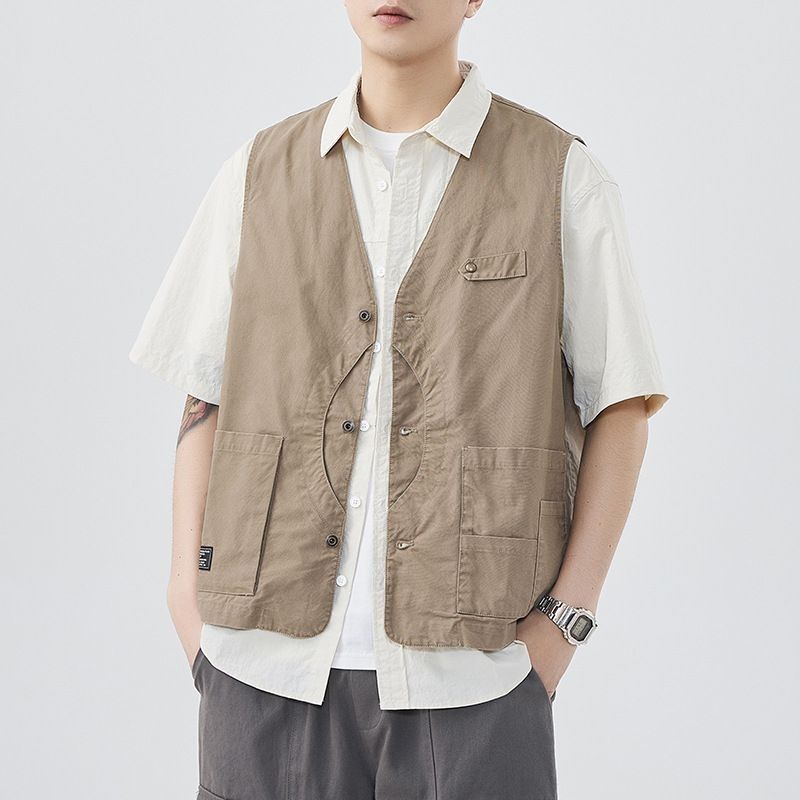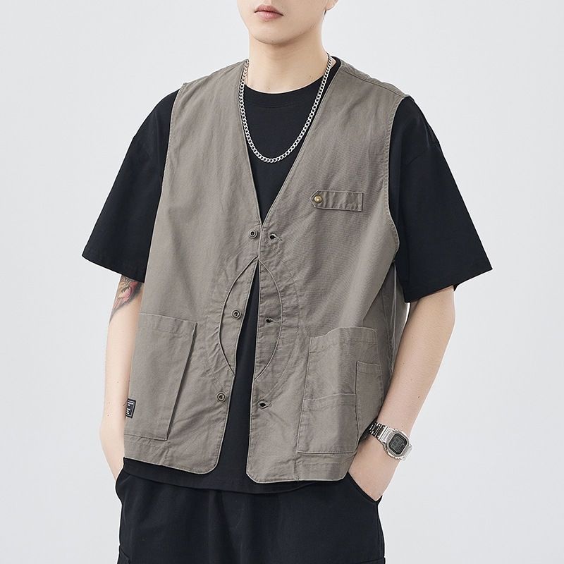헤비 워시 아메리칸 레트로 워크웨어 남성용 민소매 조끼 셔츠 재킷 봄, 가을 기능성 멀티 포켓 등산스토어 가기