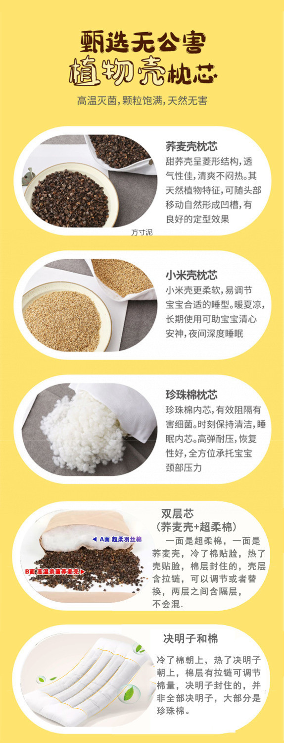 아기 베개 메밀 껍질 탈부착 및 세탁 가능 어린이 및 유아 수면 아기 특수 0-6 세 도매 공장스토어 가기