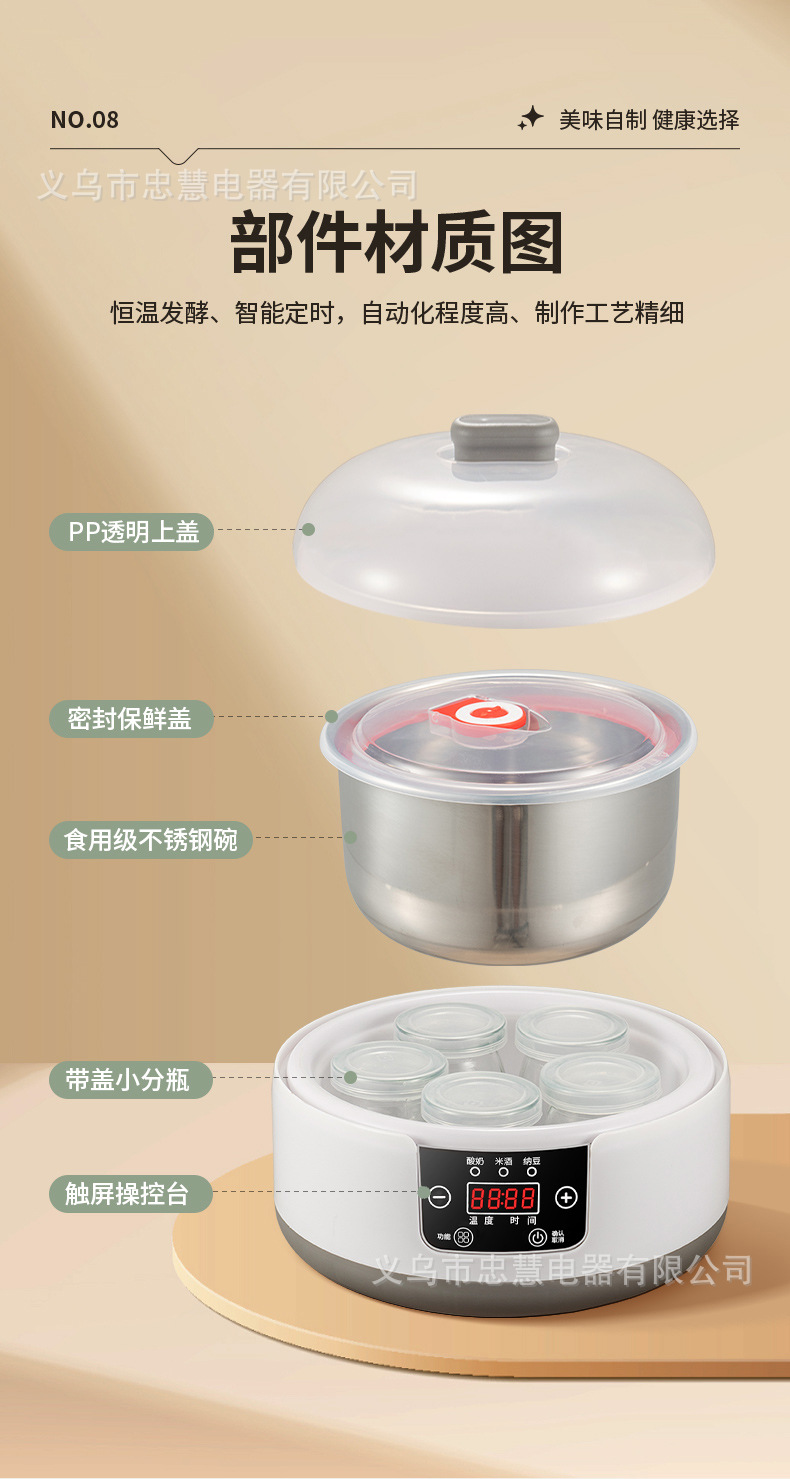 材质:食品级PP+ 304#不锈钢内胆(食品级玻璃杯)