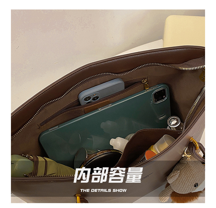 크로스보더 레트로 토트백, 대용량, 고급 질감의 숄더백, 패셔너블한 한국식 여성용 휴대용 겨드랑이 가방스토어 가기