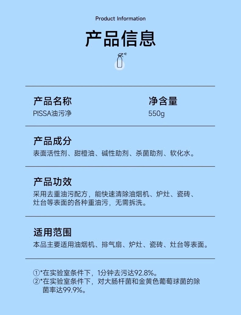 기름얼룩청소기 주방중유청소기 레인지후드 청소용품 중유얼룩 제거 스토브 스케일 제거기