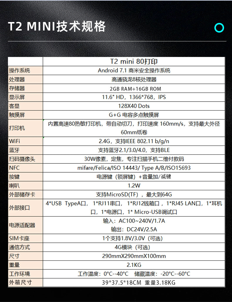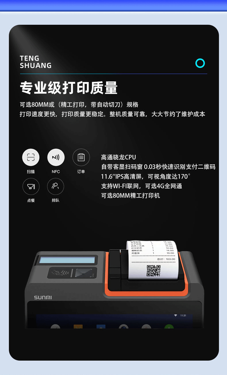 국경 간 터치 금전 등록기 SUNMI T2MINI 데스크탑 금전 등록기 NFC 카드 스캔 영수증 기계스토어 가기