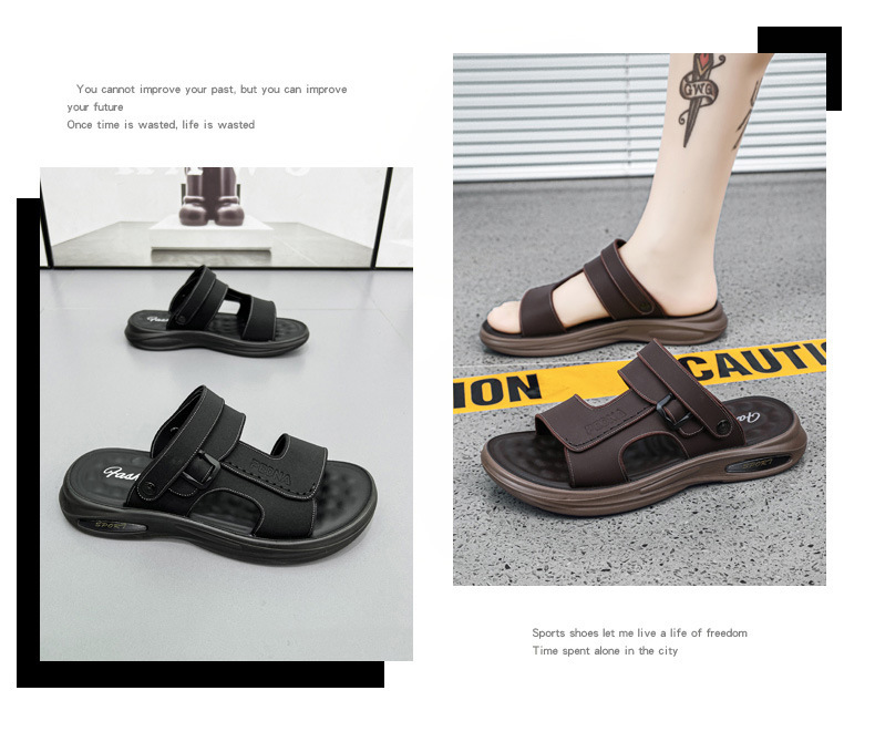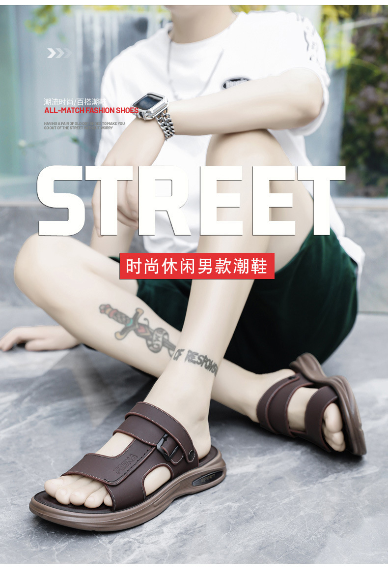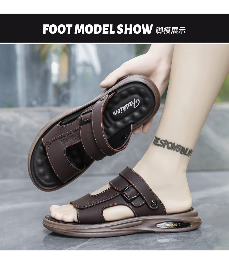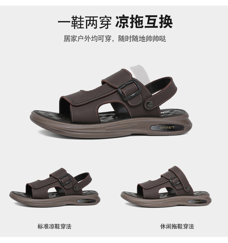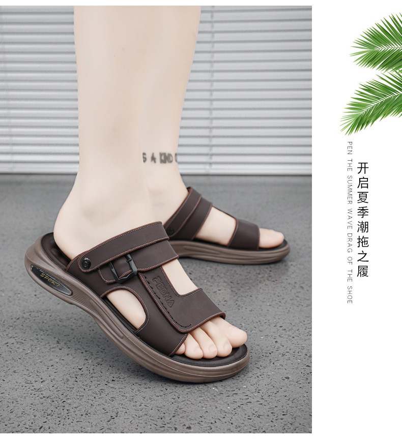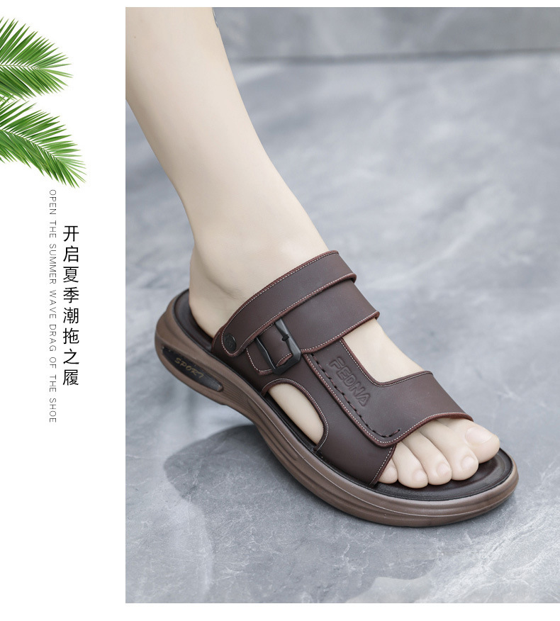 여름 아우터용 남성용 샌들, 미끄럼 방지, 냄새 방지, 아빠 운전, 천연 가죽 부드러운 밑창 야외 스포츠 웨이딩 비치 슬리퍼