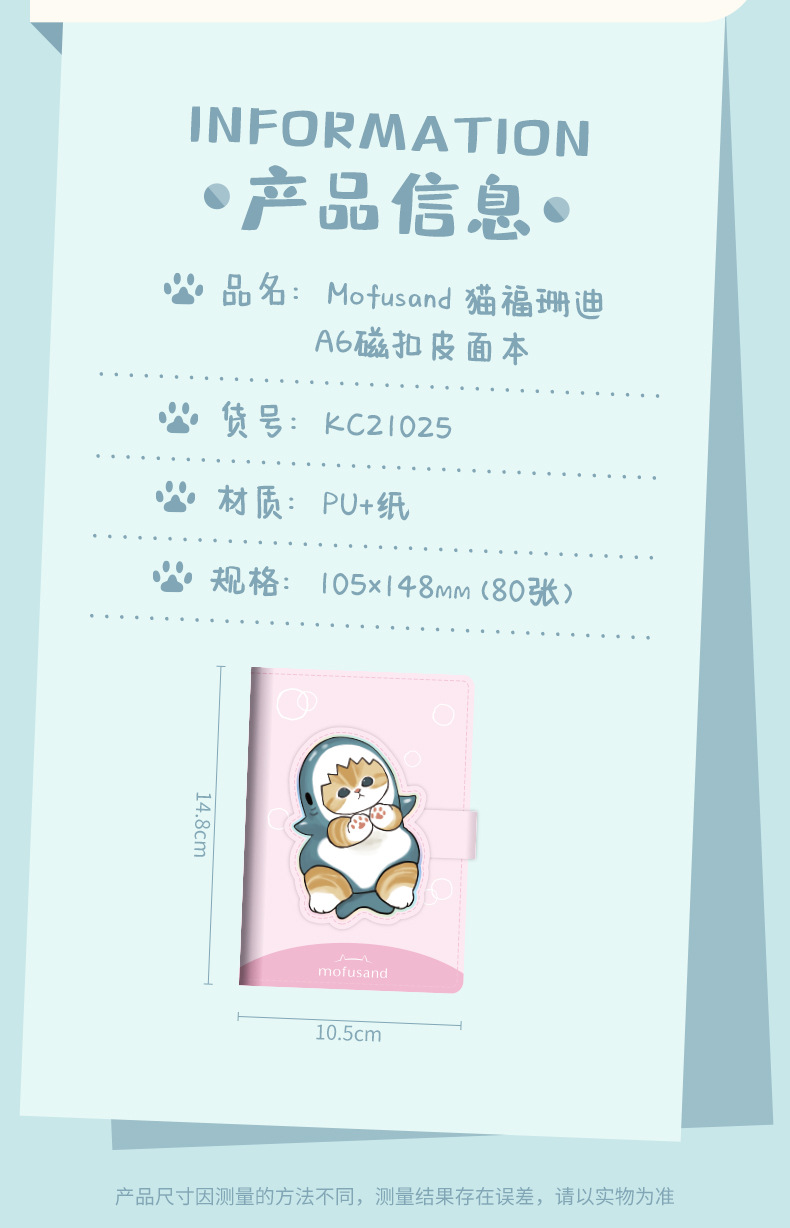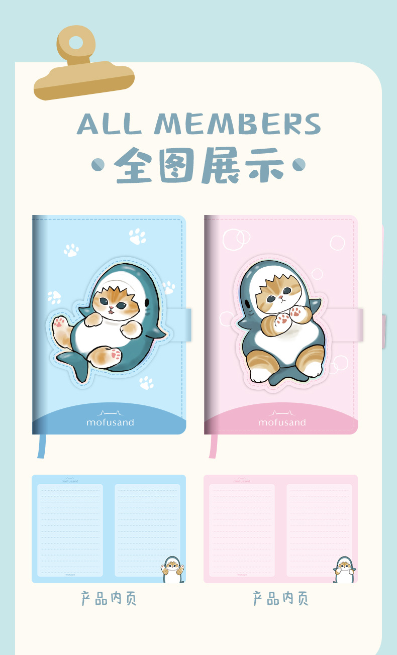 정품 공동 상어 고양이 A6 마그네틱 버클 가죽 그물 인기있는 높은 색상 값에 일본 휴대용 A6 컬러 페이지 손 계정 책스토어 가기