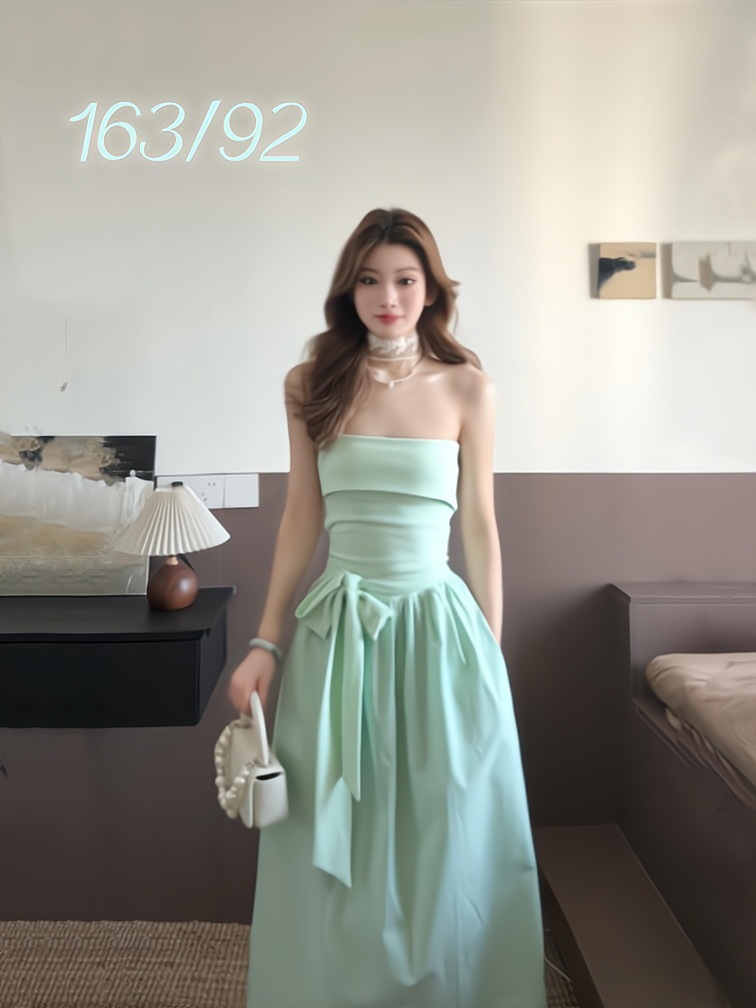 디자인 센스 패션 스트랩리스 원피스 여름 새로운 웨이스트 활 달콤한 가리 롱 원피스스토어 가기