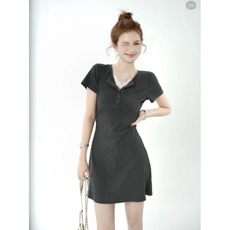 치즈 열대 맘바 2025 여름 패션 편안한 캐주얼 올 매치 슬리밍 중간 길이 원피스스토어 가기