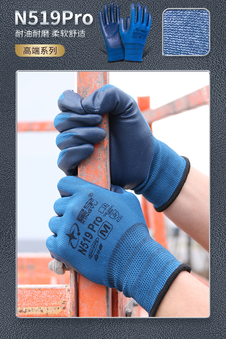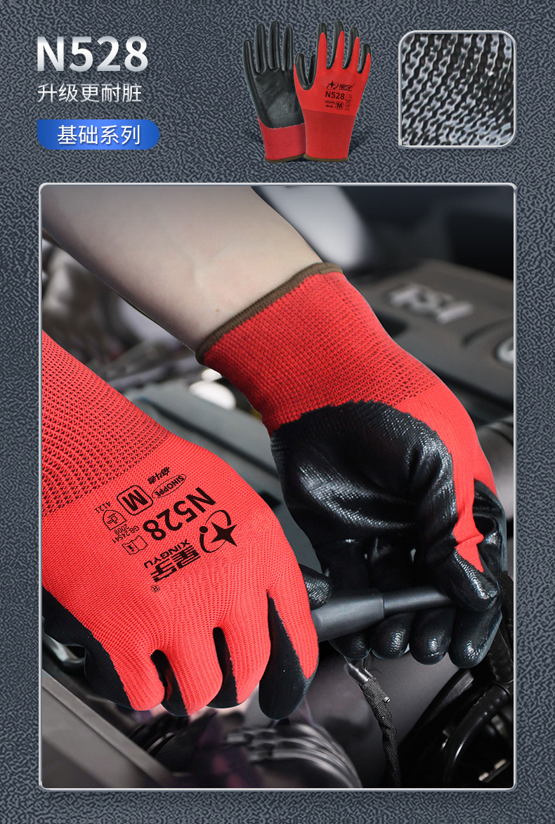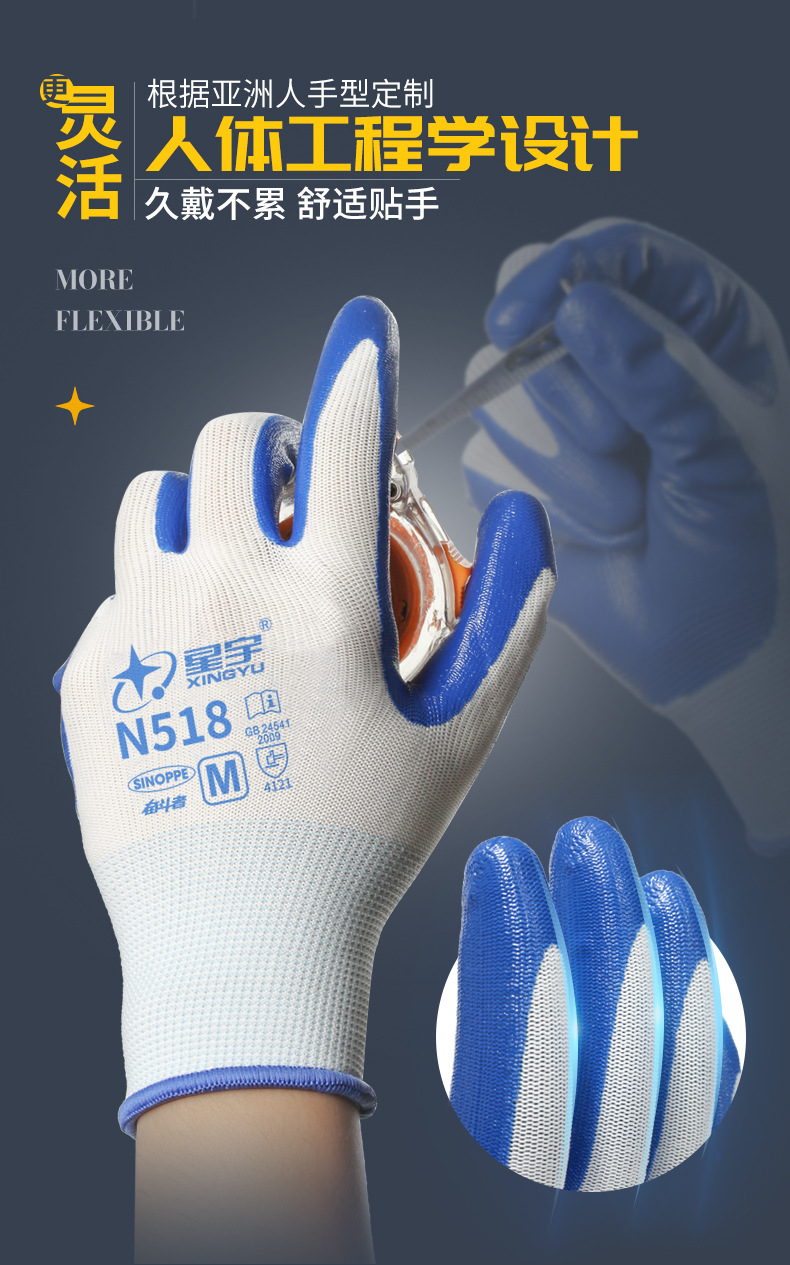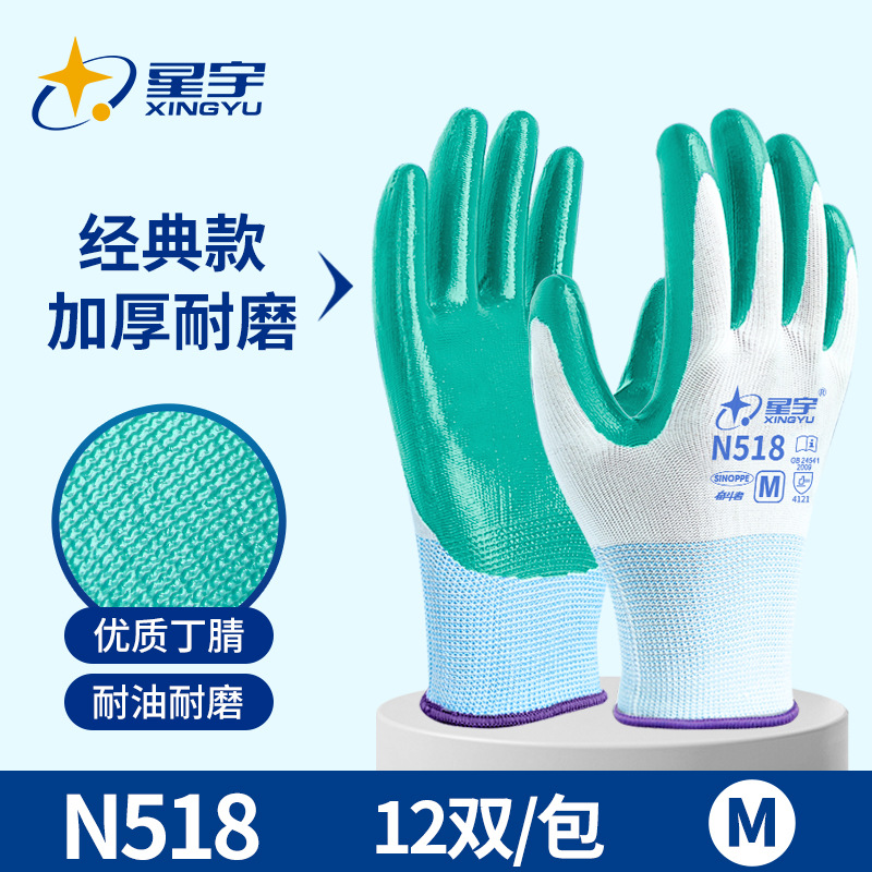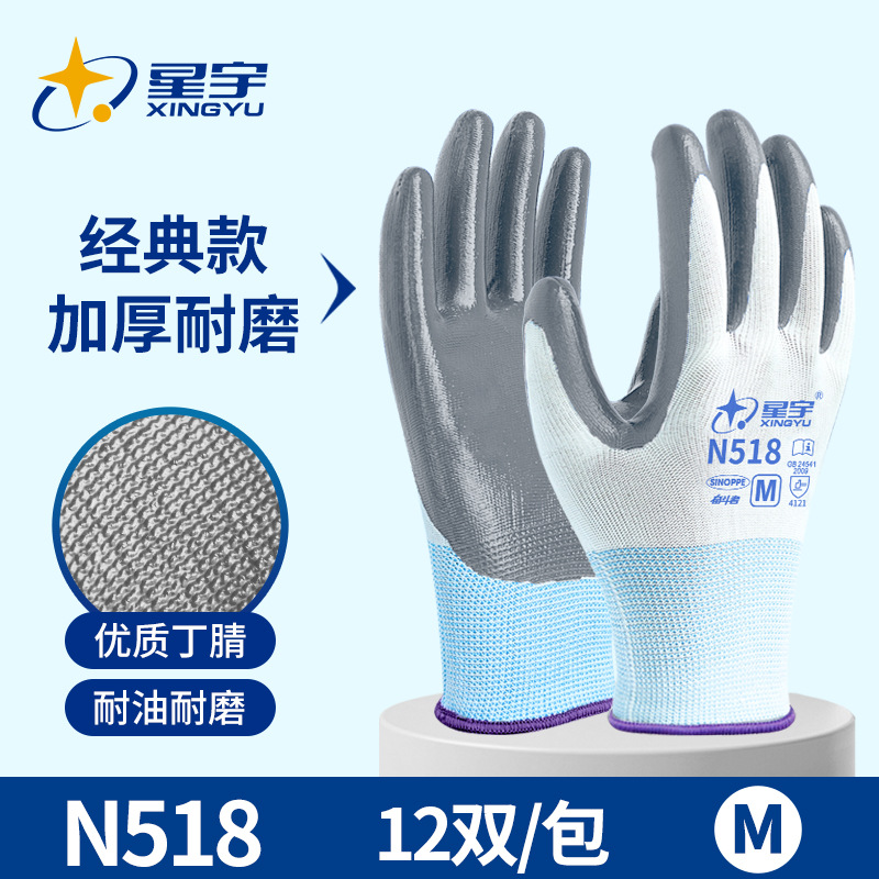 Xingyu N518 노동 보호 장갑 왼쪽 및 오른손용 내마모성 및 내유성 니트릴 고무 코팅 노동 현장 작업