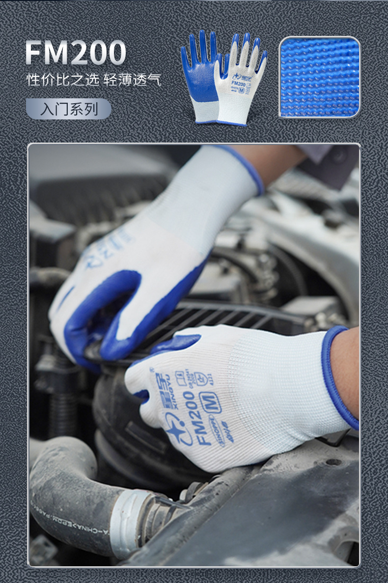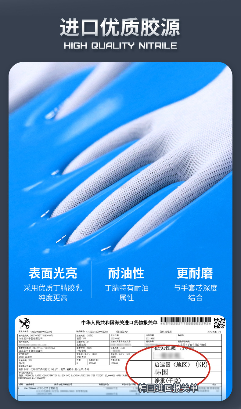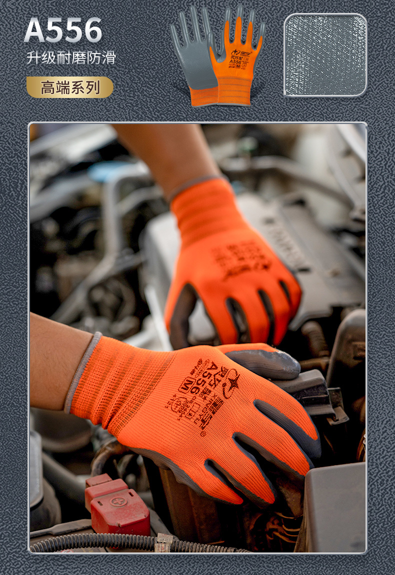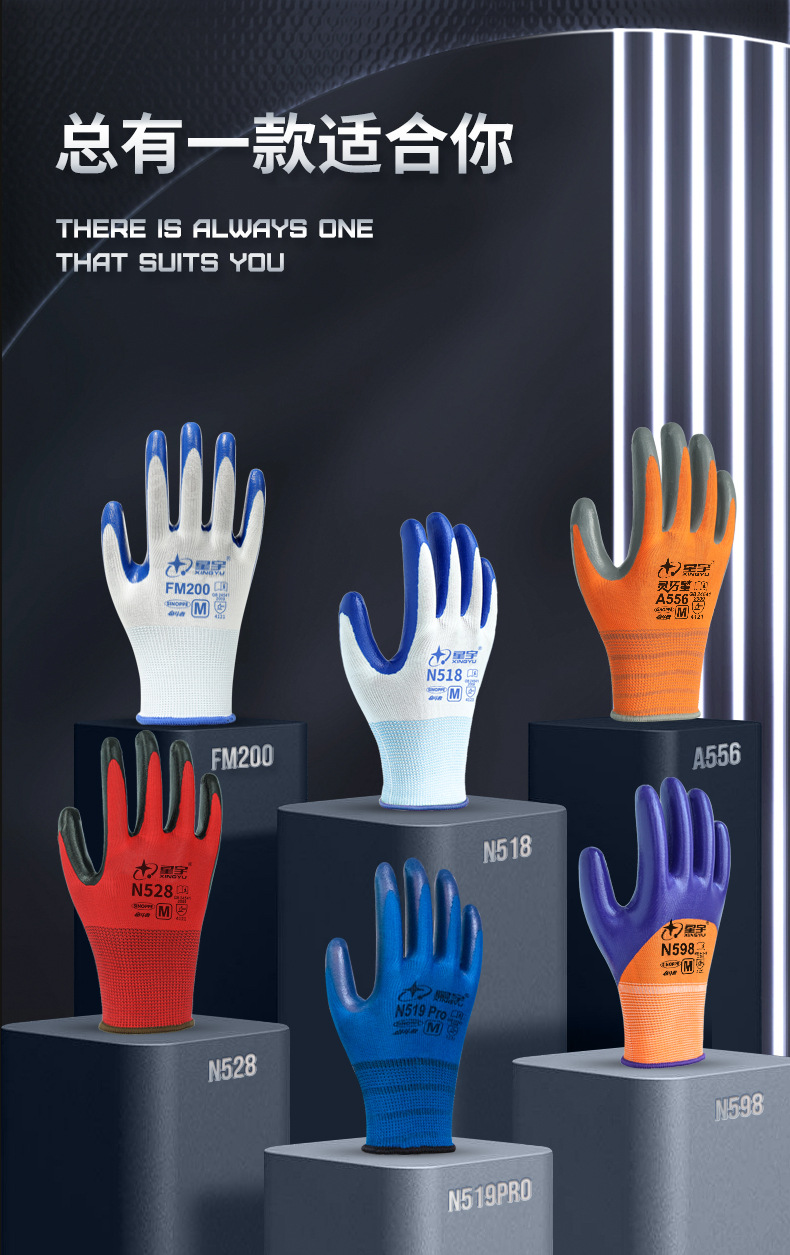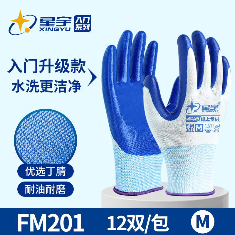 Xingyu N518 노동 보호 장갑 왼쪽 및 오른손용 내마모성 및 내유성 니트릴 고무 코팅 노동 현장 작업