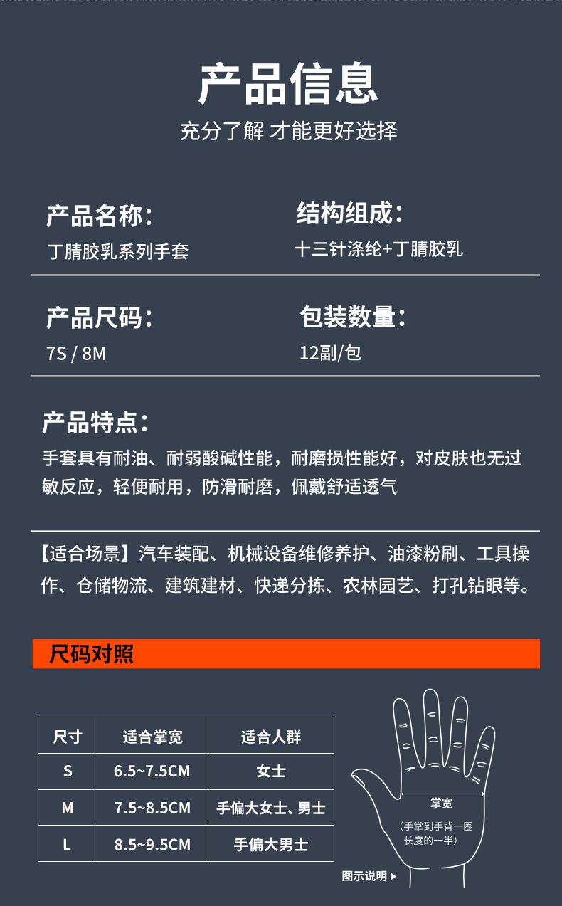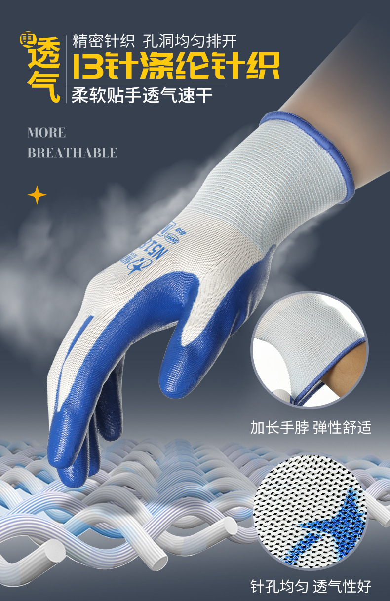 Xingyu N518 노동 보호 장갑 왼쪽 및 오른손용 내마모성 및 내유성 니트릴 고무 코팅 노동 현장 작업스토어 가기