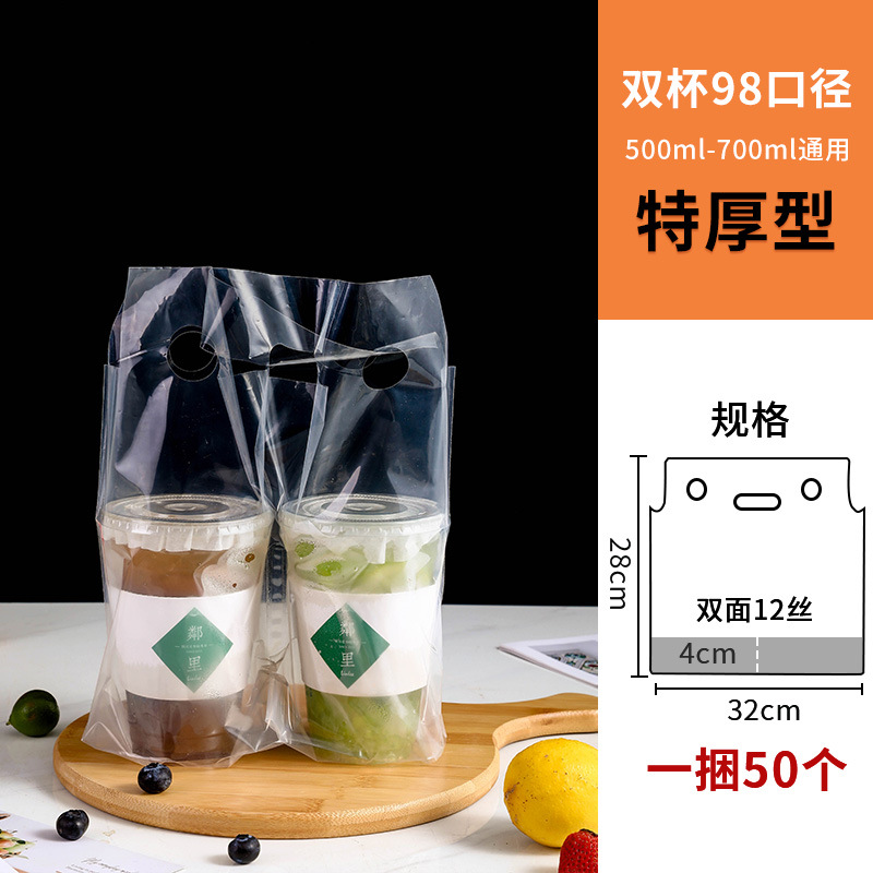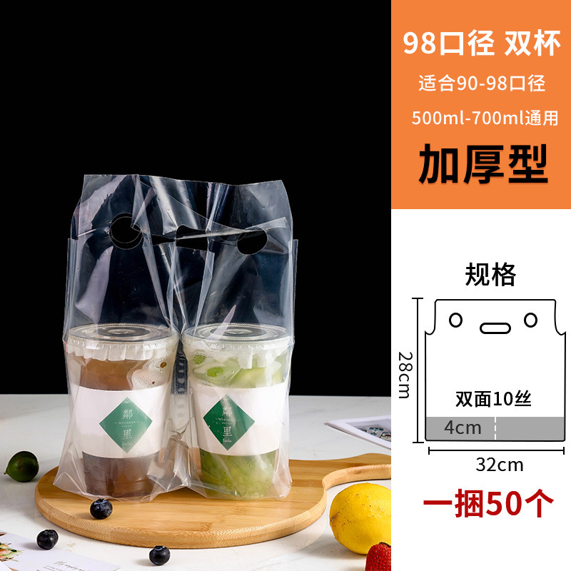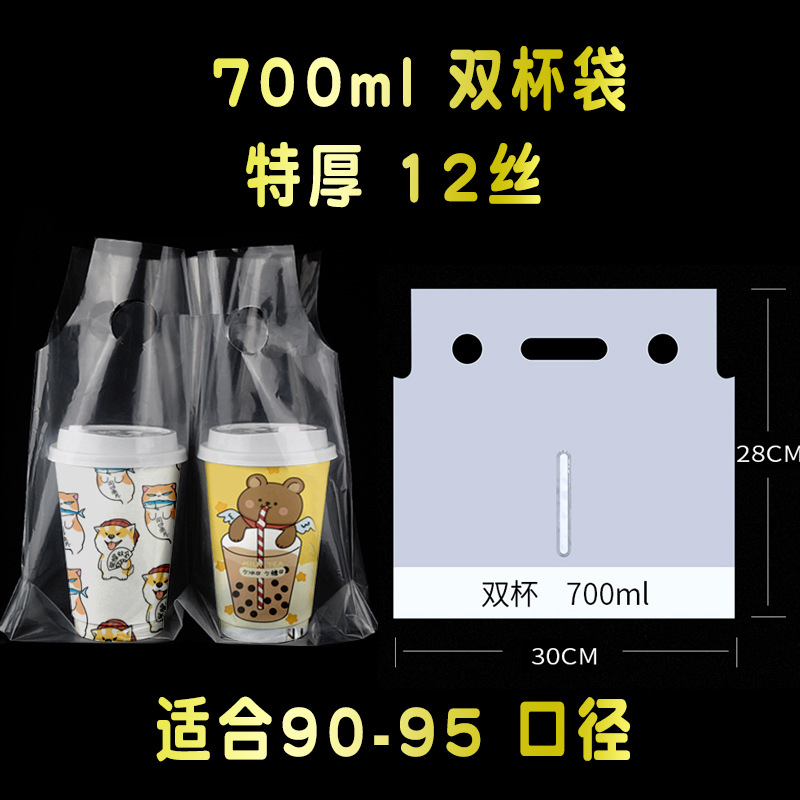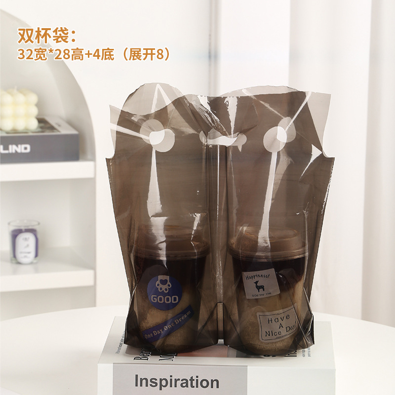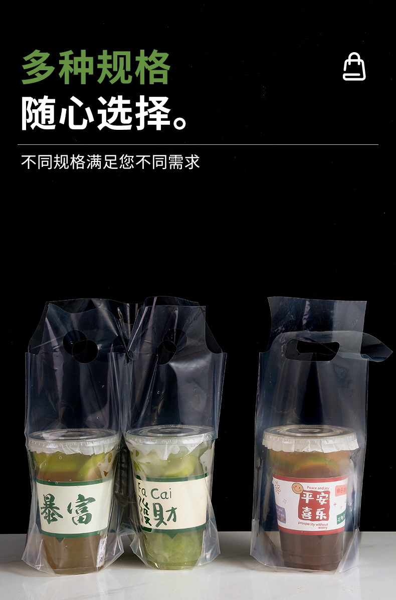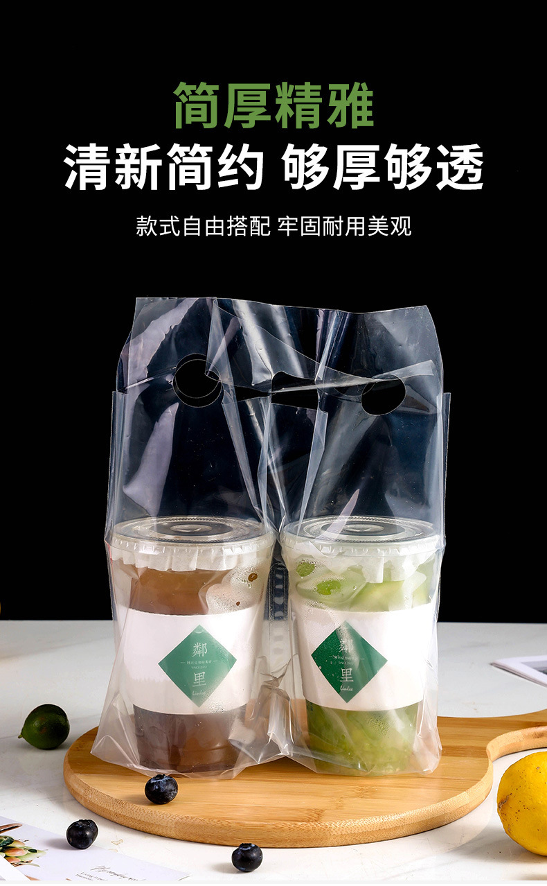밀크티 가게 포장 백 일회용 음료 커피 테이크아웃 매우 투명한 두꺼운 단일 컵 더블 컵 휴대용 가방
