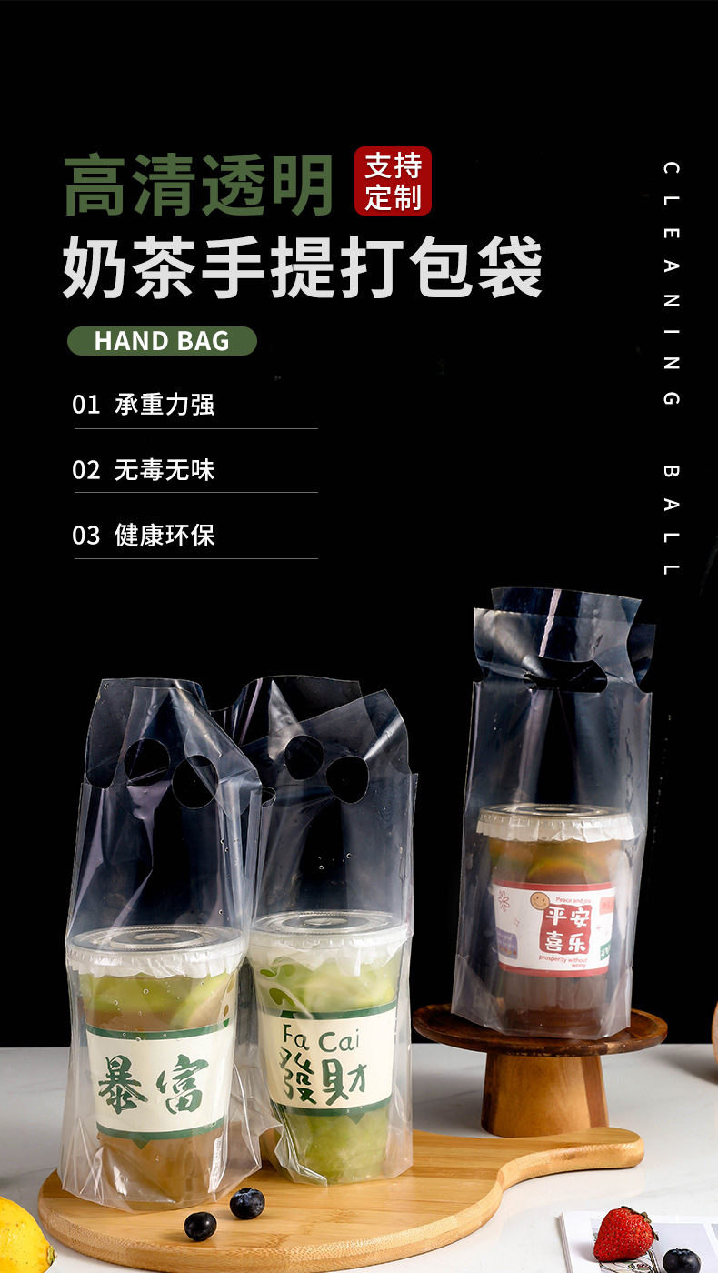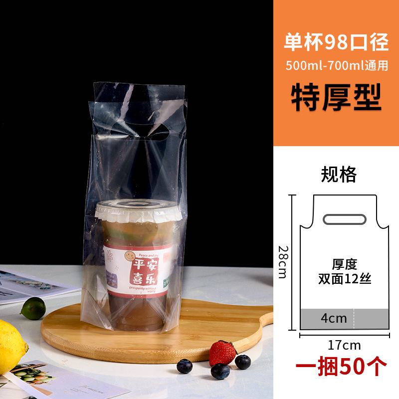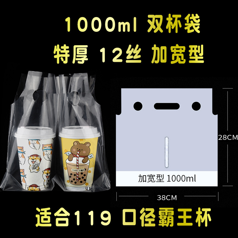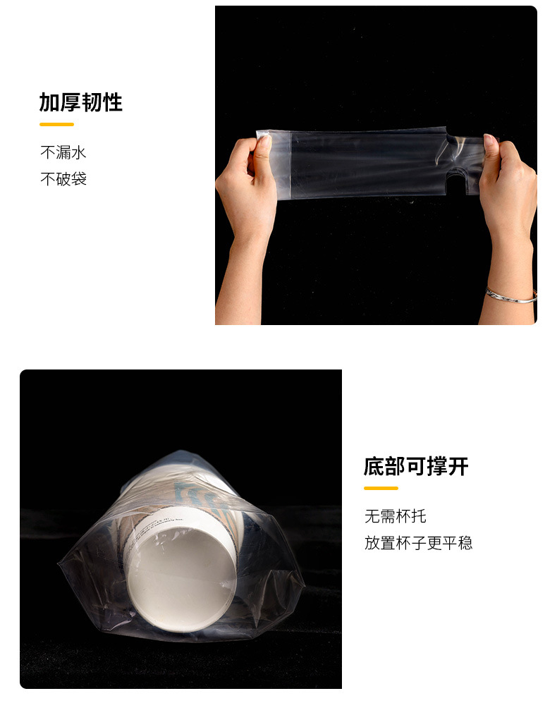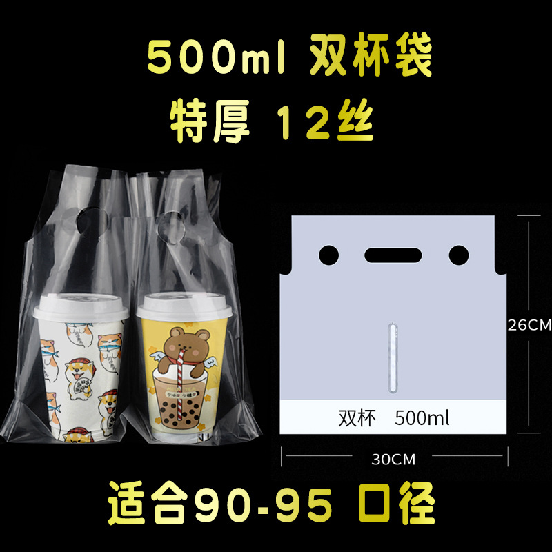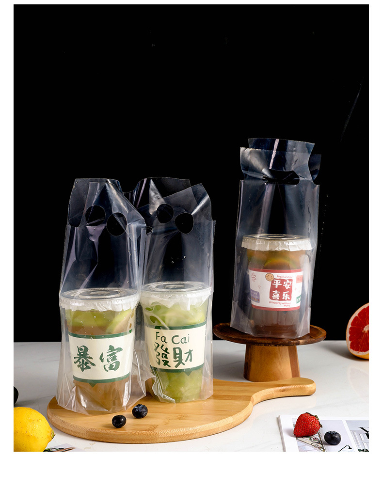 밀크티 가게 포장 백 일회용 음료 커피 테이크아웃 매우 투명한 두꺼운 단일 컵 더블 컵 휴대용 가방