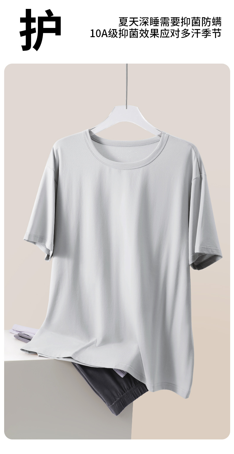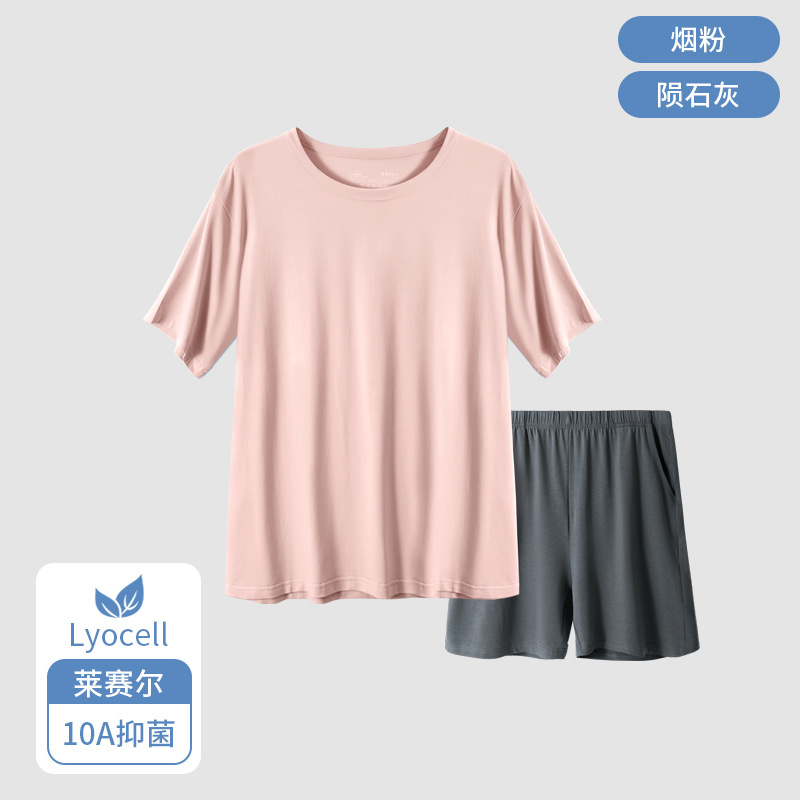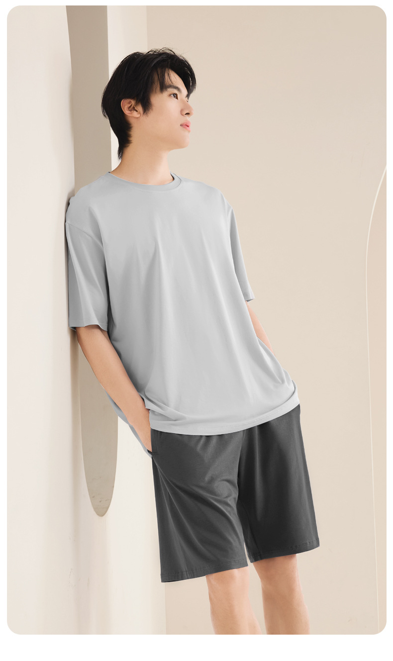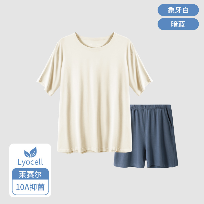 클래스 A 리오셀 잠옷 남성용 여름 반팔 반바지는 캐주얼 스포츠 라운드 넥 풀오버 홈웨어 세트 외부에 착용 가능스토어 가기