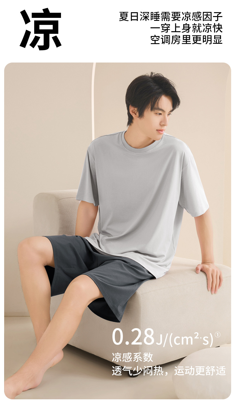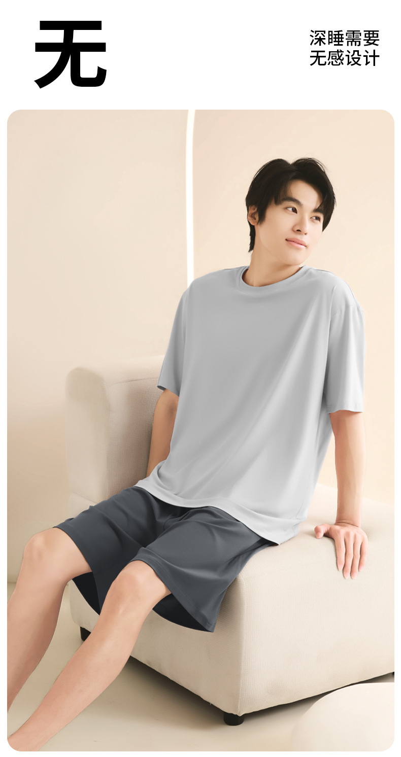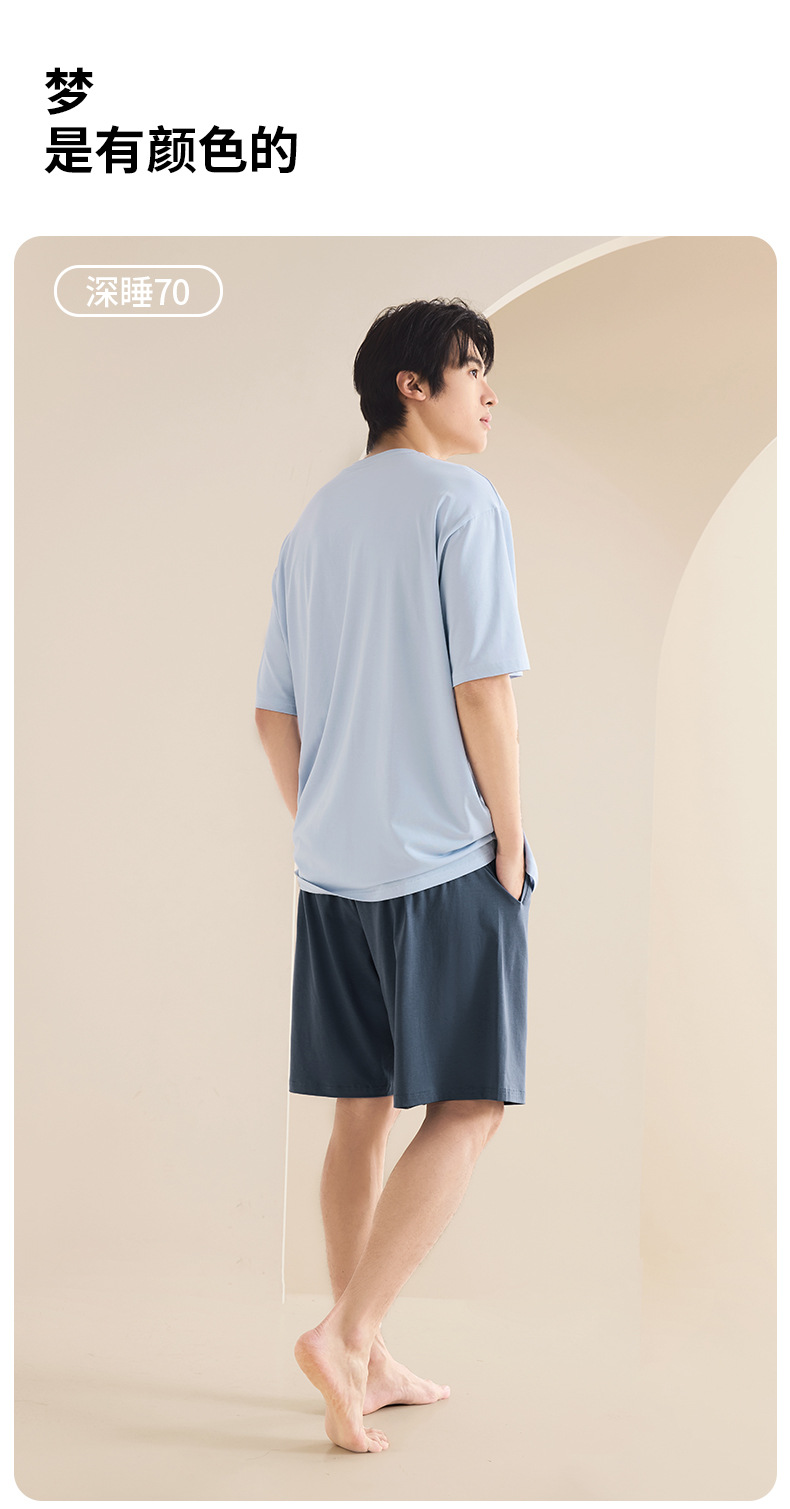 클래스 A 리오셀 잠옷 남성용 여름 반팔 반바지는 캐주얼 스포츠 라운드 넥 풀오버 홈웨어 세트 외부에 착용 가능스토어 가기