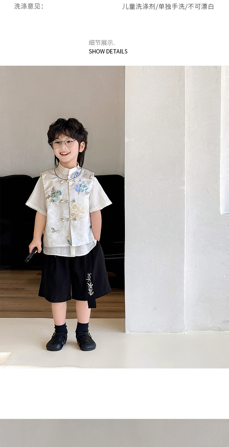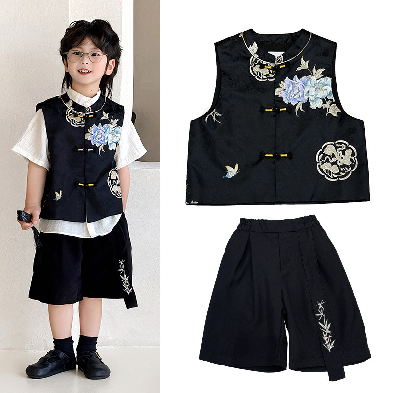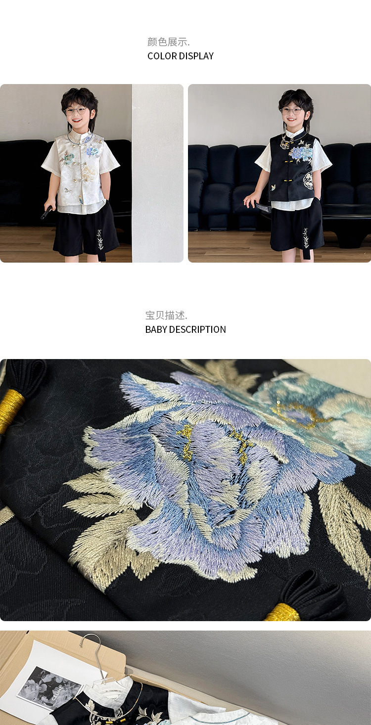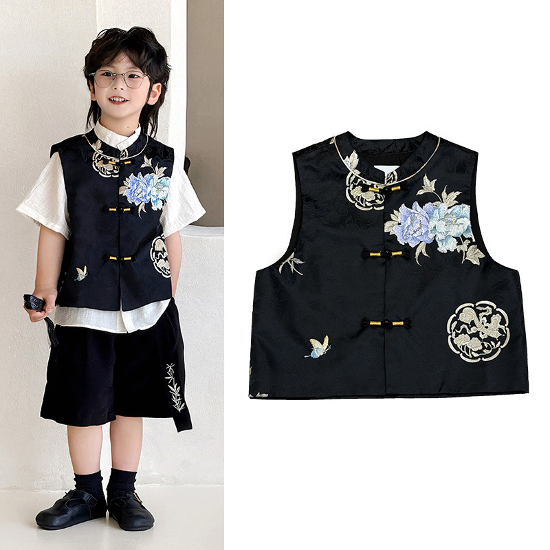 어린이 새로운 중국 조끼 2025 여름 자카드 버클 자수 버클 담요 아기의 국가 스타일 탕 코트 조끼스토어 가기