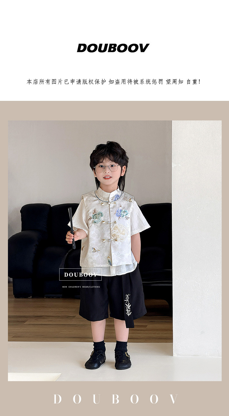 어린이 새로운 중국 조끼 2025 여름 자카드 버클 자수 버클 담요 아기의 국가 스타일 탕 코트 조끼
