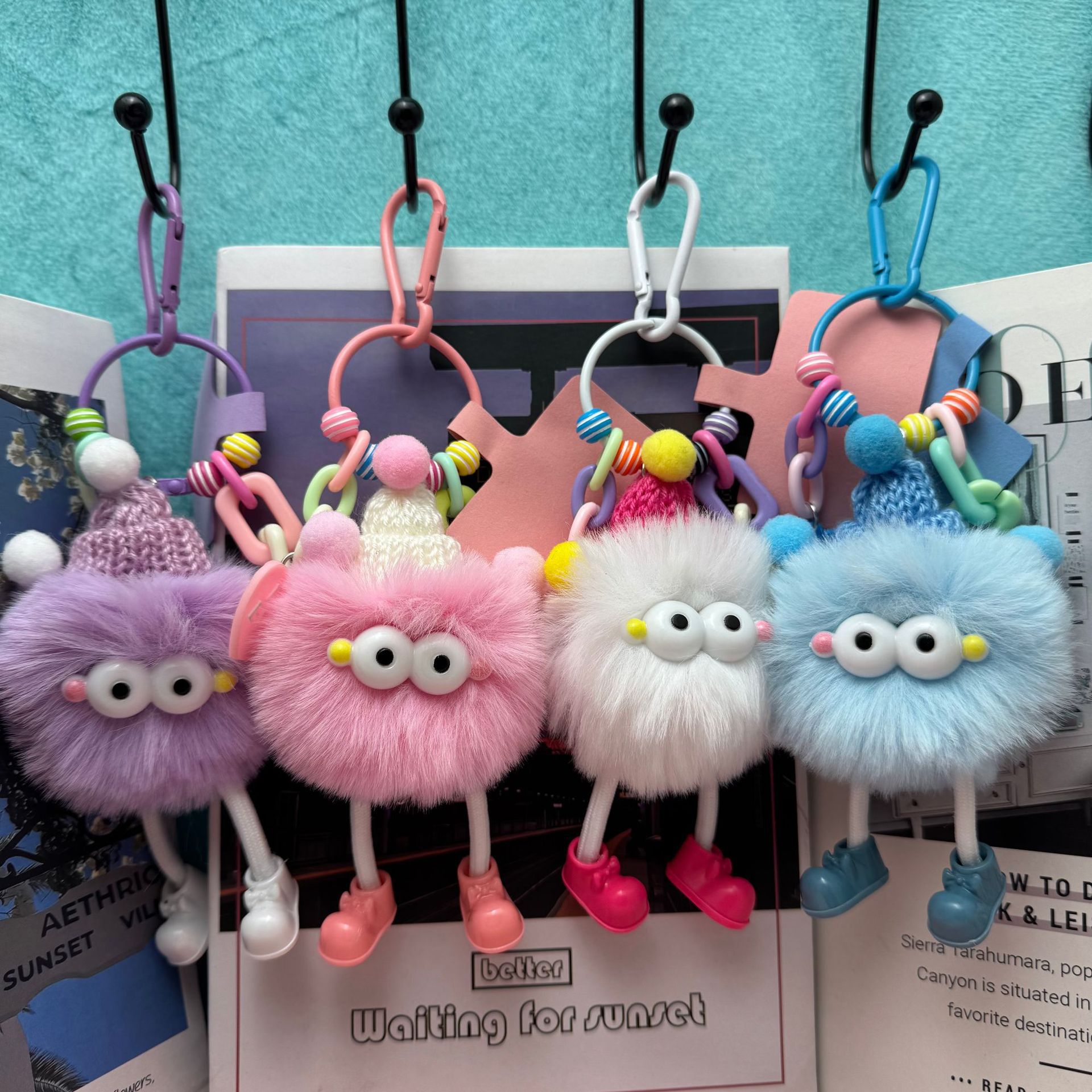 크로스보더 헤어볼 엘프 신발 꽃 크리 에이 티브 만화 봉제 인형 긴 다리 작은 괴물 장식 학교 가방 펜던트 키 체인