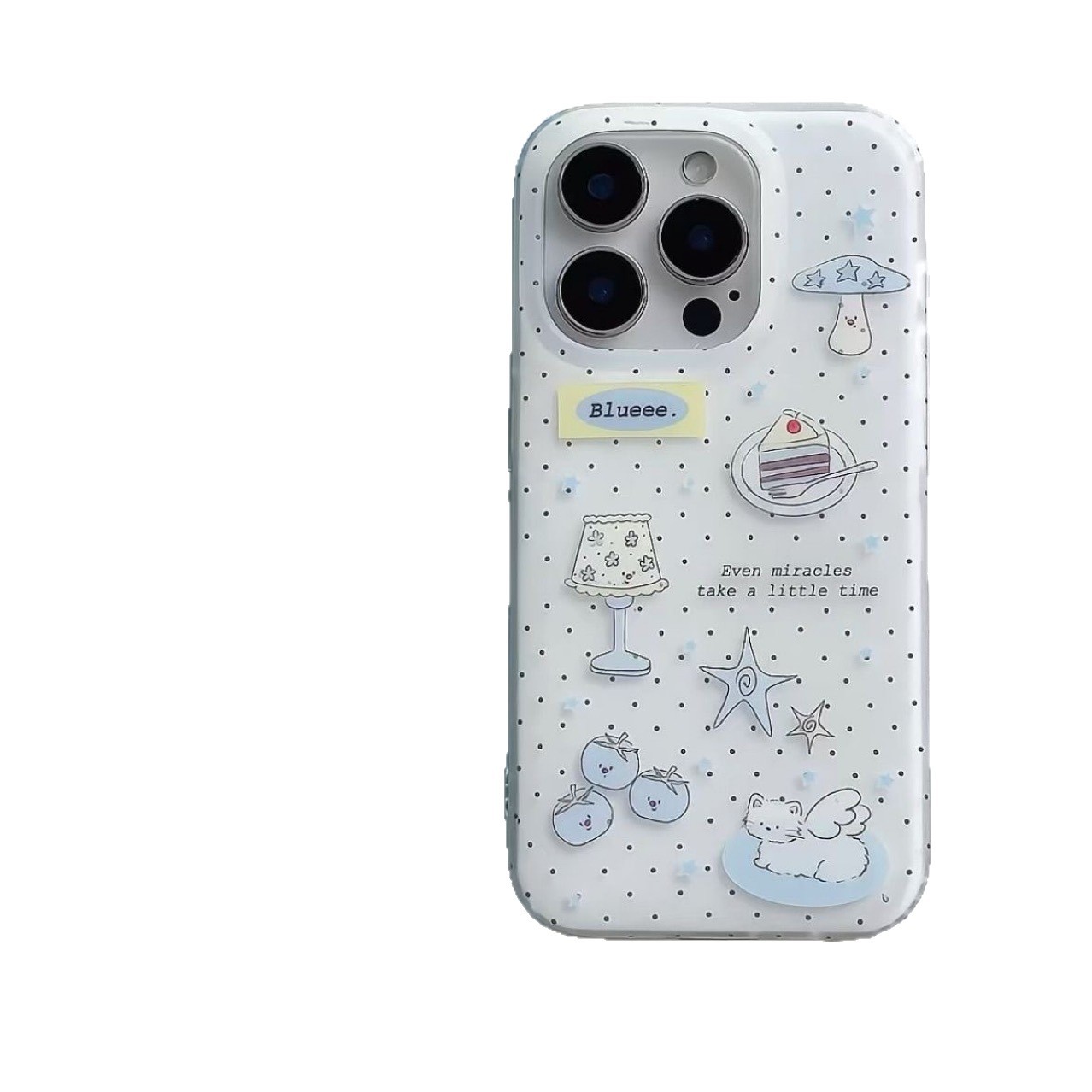 물방울 무늬 천사 고양이 애플 16/15프로맥스 휴대폰 케이스 11 이중층 충격 방지 아이폰13 하드 케이스 소프트 엣지 12/스토어 가기