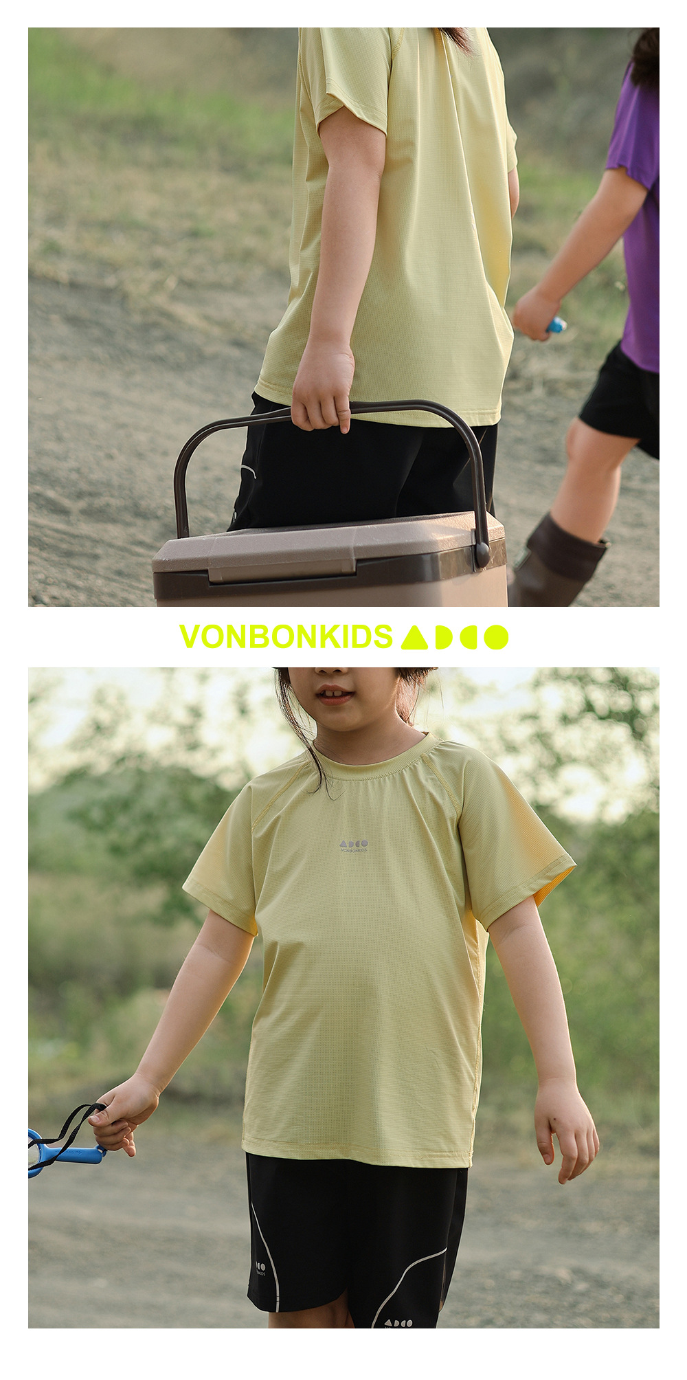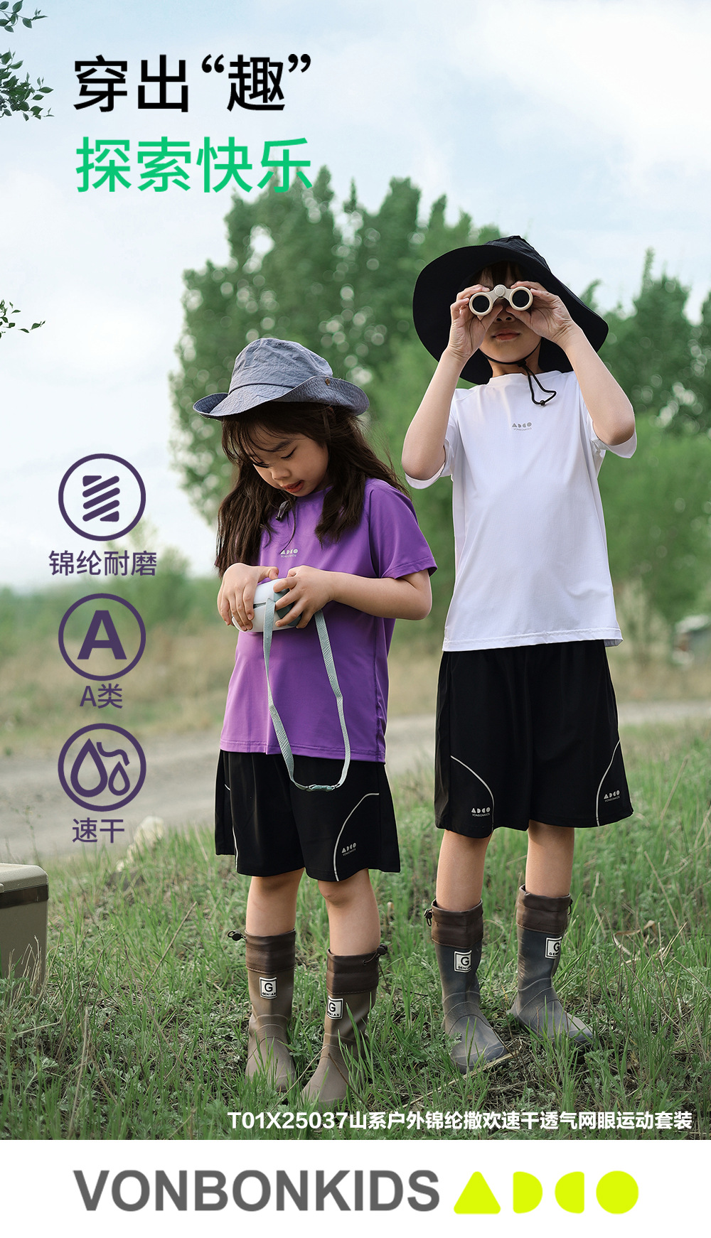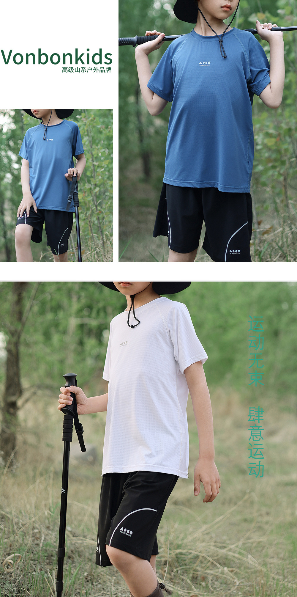 Vonbonkids 야외 소년 속건성 통기성 반팔 아동 운동복 소녀 정장 여름 투피스 부모-자식 세트스토어 가기