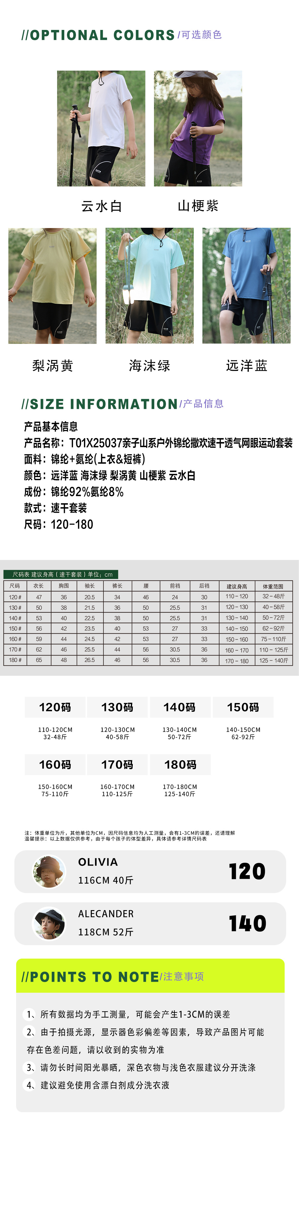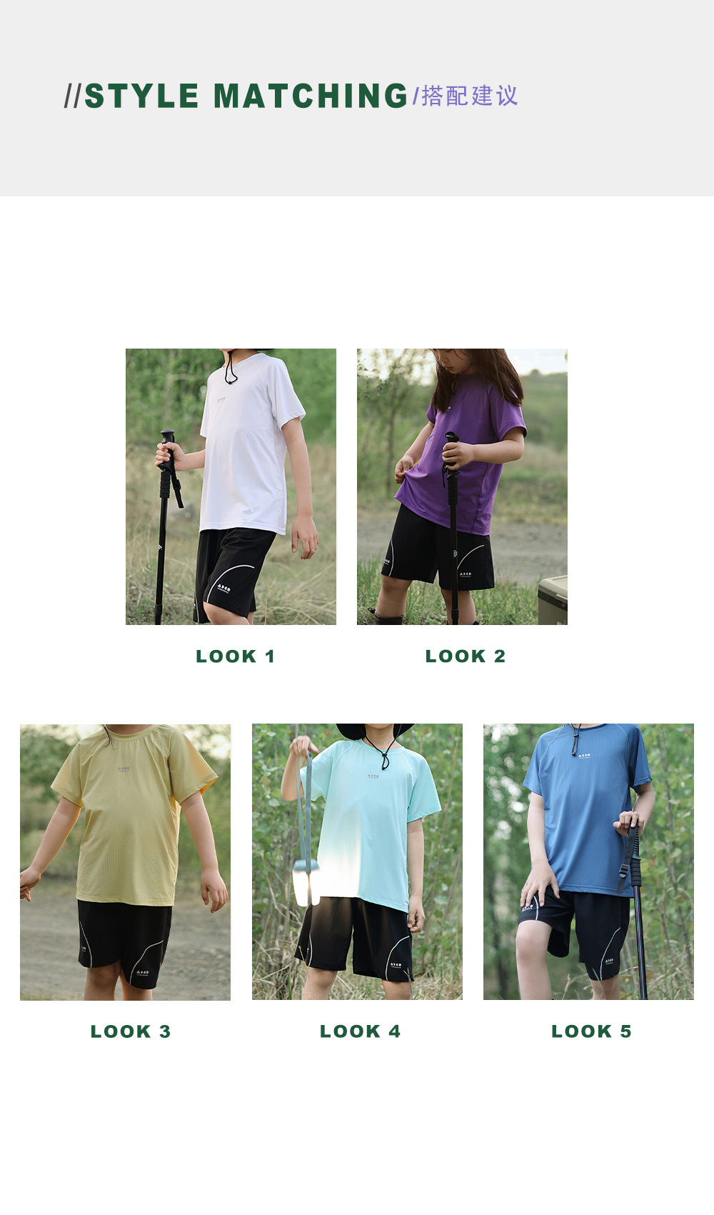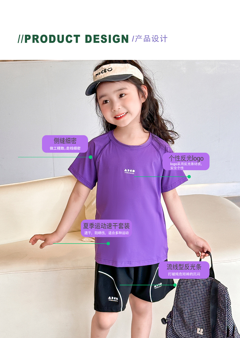 Vonbonkids 야외 소년 속건성 통기성 반팔 아동 운동복 소녀 정장 여름 투피스 부모-자식 세트스토어 가기