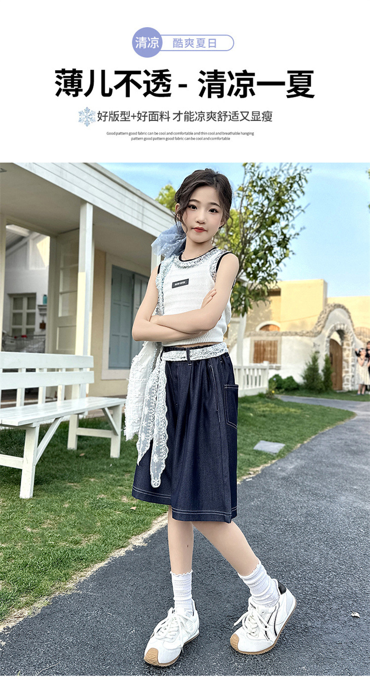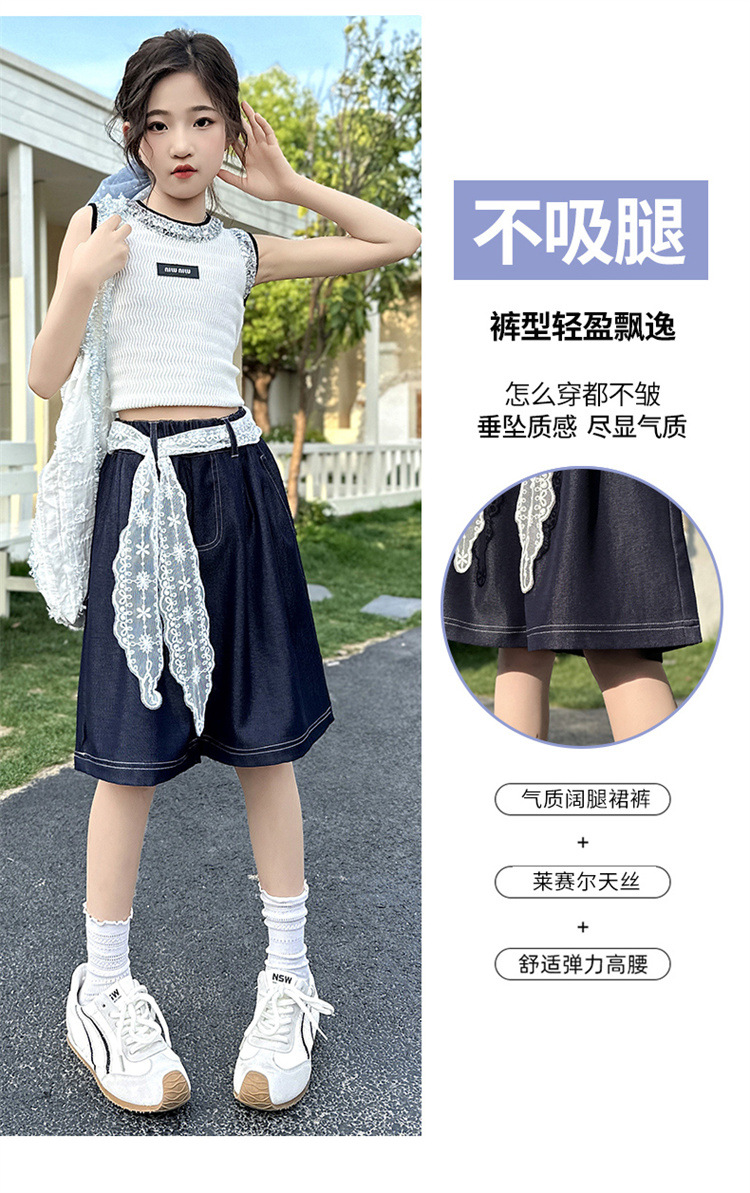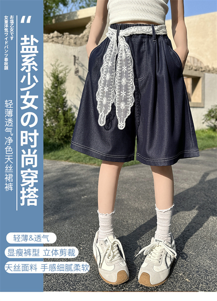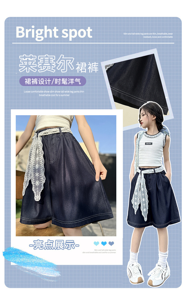 소녀 데님 중장 바지 여름 얇은 2025 새로운 도착 여름 원피스 소녀 스타일리시 와이드 레그 바지 어린이 스커트 바지 여름스토어 가기