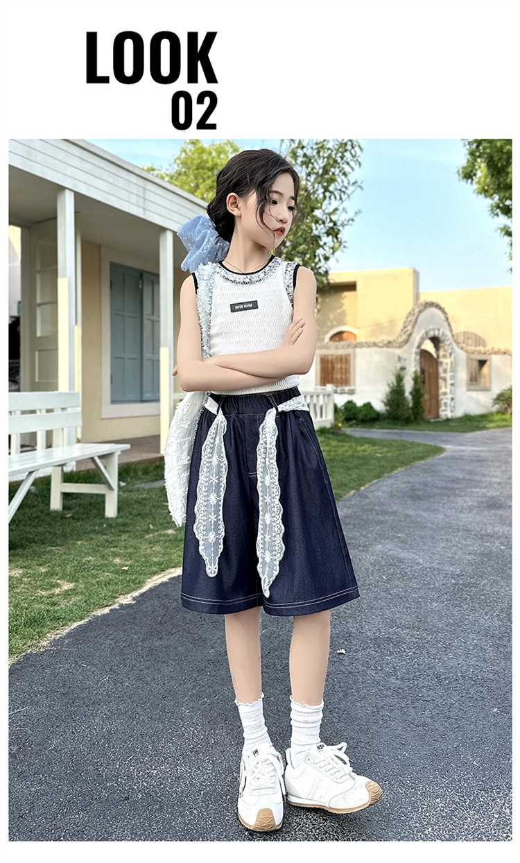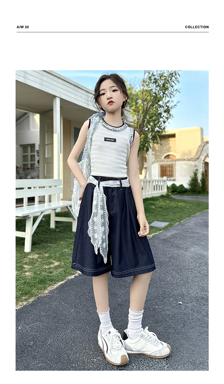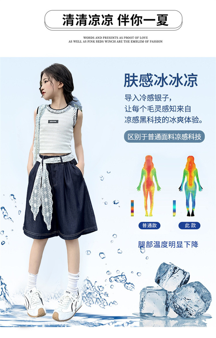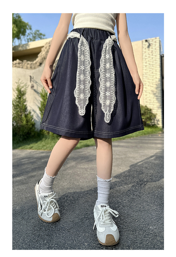 소녀 데님 중장 바지 여름 얇은 2025 새로운 도착 여름 원피스 소녀 스타일리시 와이드 레그 바지 어린이 스커트 바지 여름스토어 가기