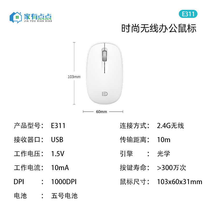 USB 미니 초박형 광전 2.4G 무선 데스크탑 노트북 무선 마우스/E311 화이트스토어 가기