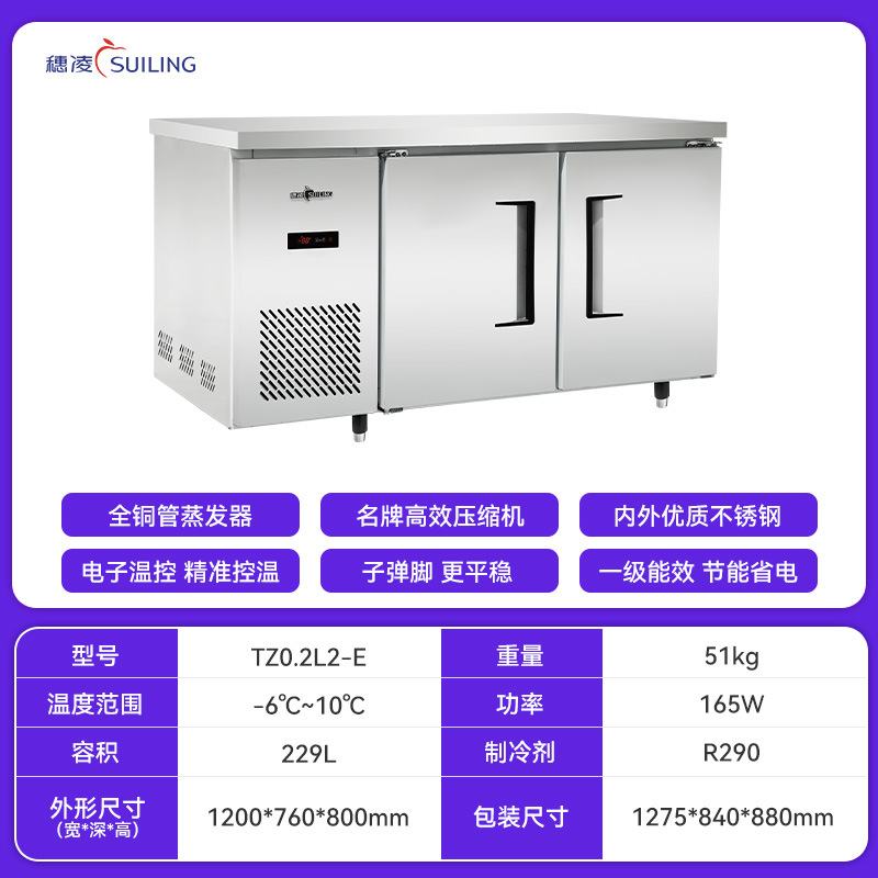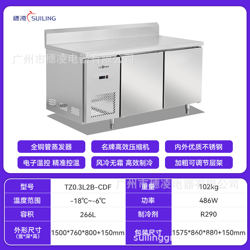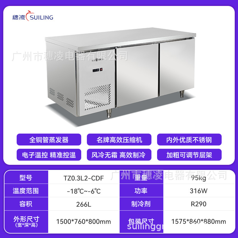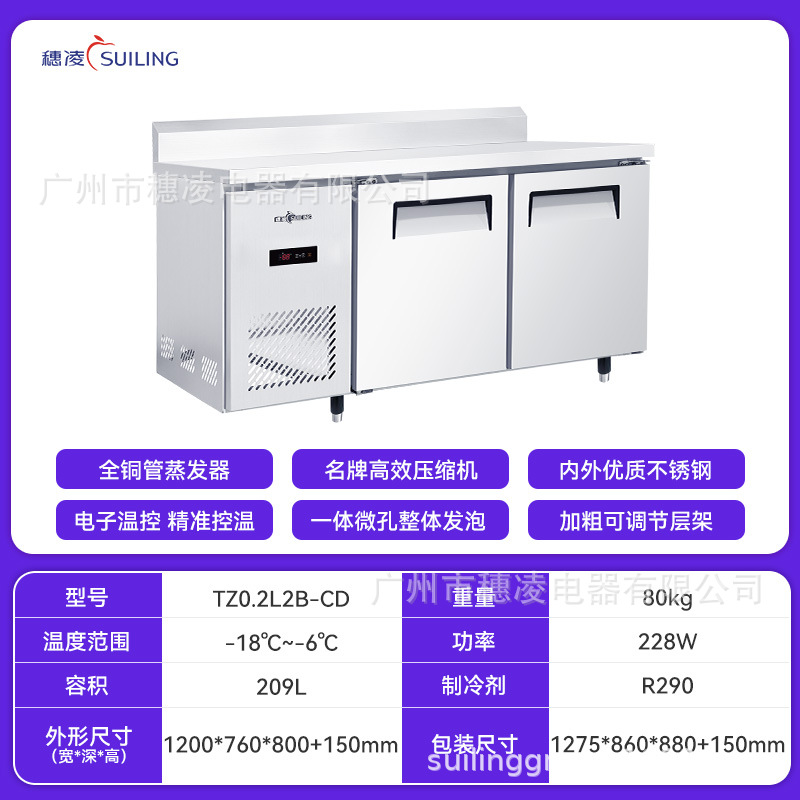 Suiling 스팟 냉동고 상업용 냉동고 냉장 신선 유지 냉장고 작업대 스테인레스 스틸 데스크탑 냉동고 소스 공장